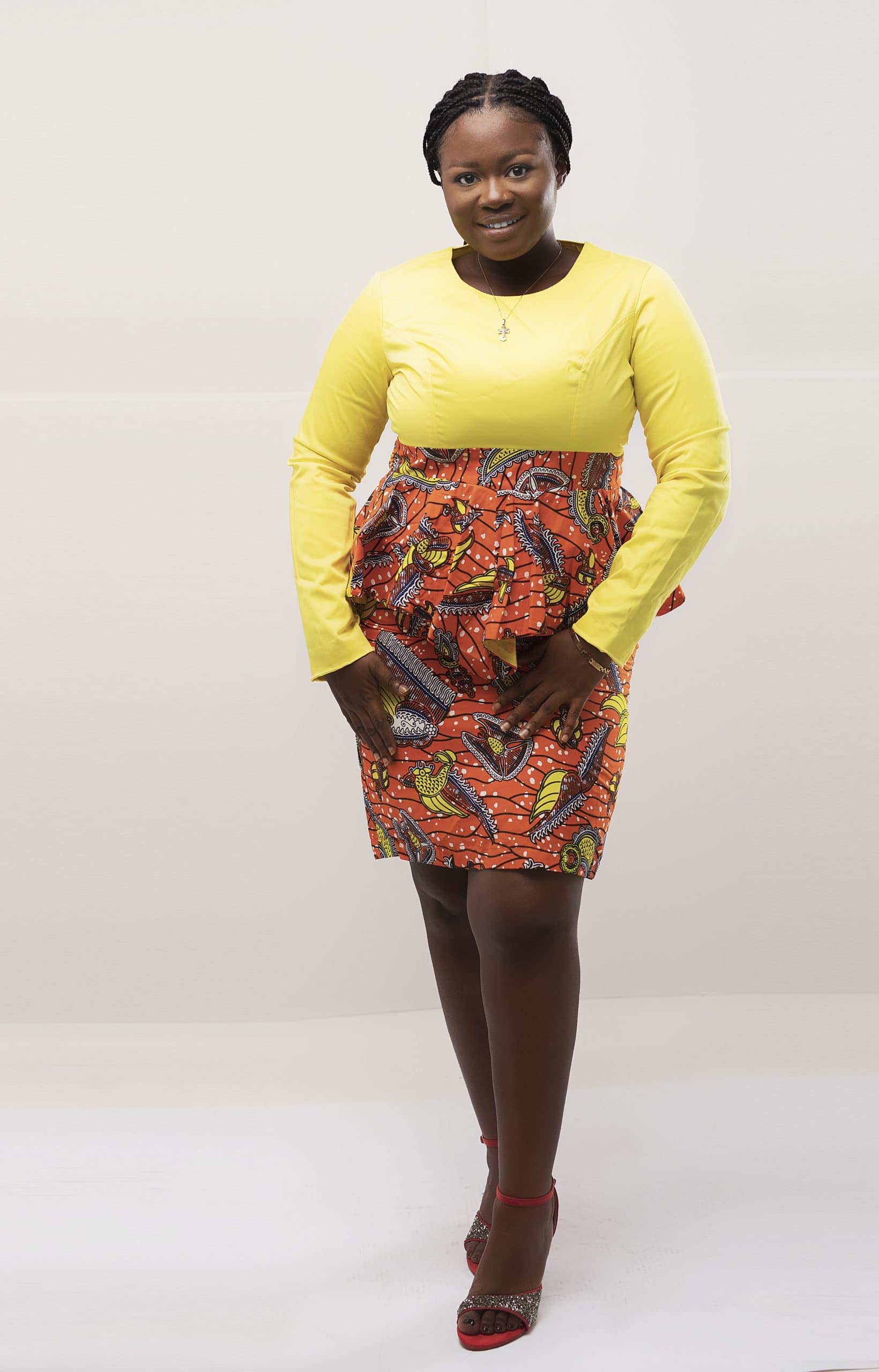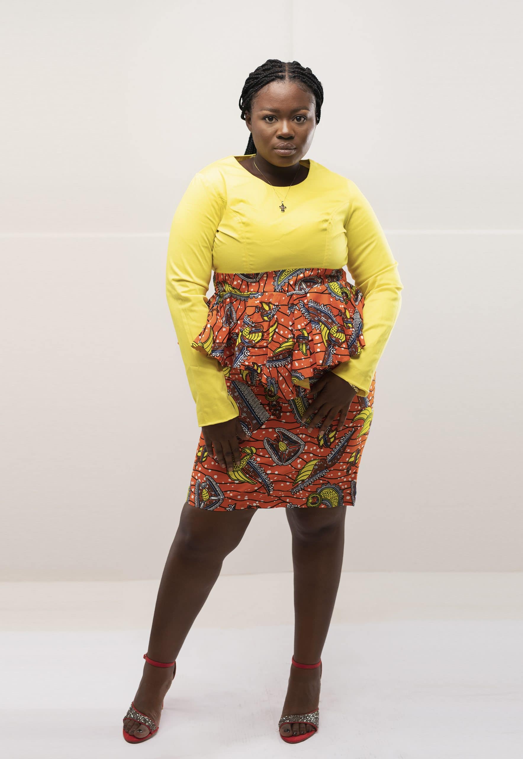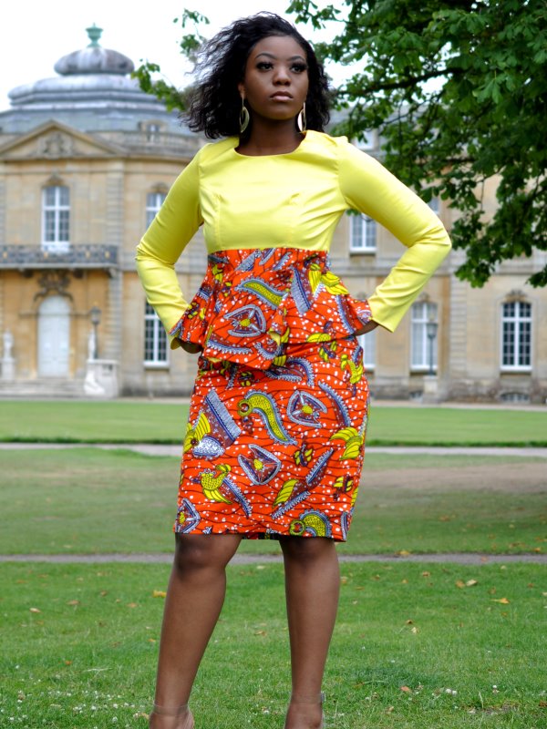 With bright yellow and orange tones and pretty African print, this Haniah two-piece skirt set with contrasting top is great for summer occasions. Dress up with heels for an elegant look!