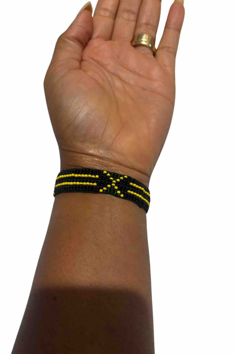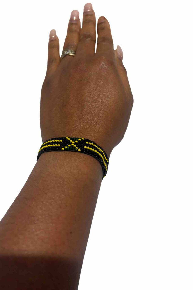 Handmade beaded bracelet in Jamaican flag colors
