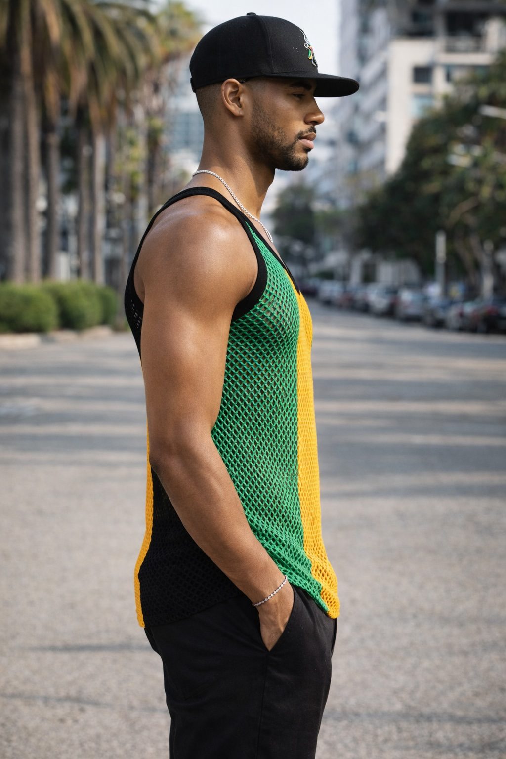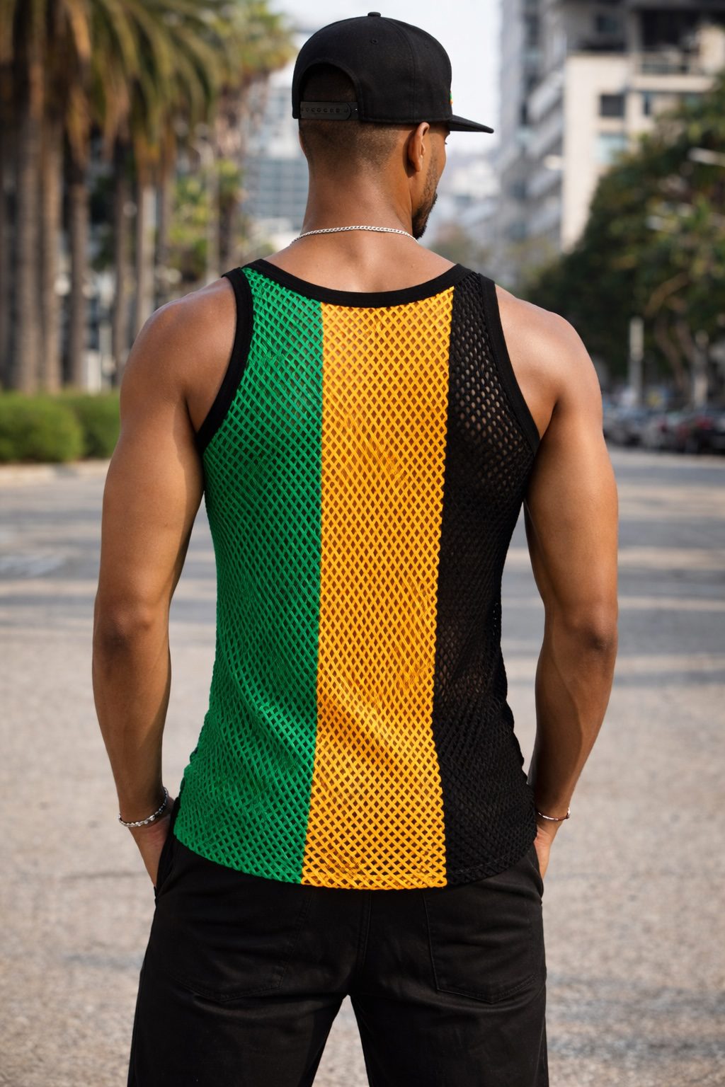 The striking green, gold, and black colour combination reflects the spirit of Jamaica. Not only are the colours vibrant, but they are also designed to stay bright over time. Consequently, you can wear this vest season after season with confidence.