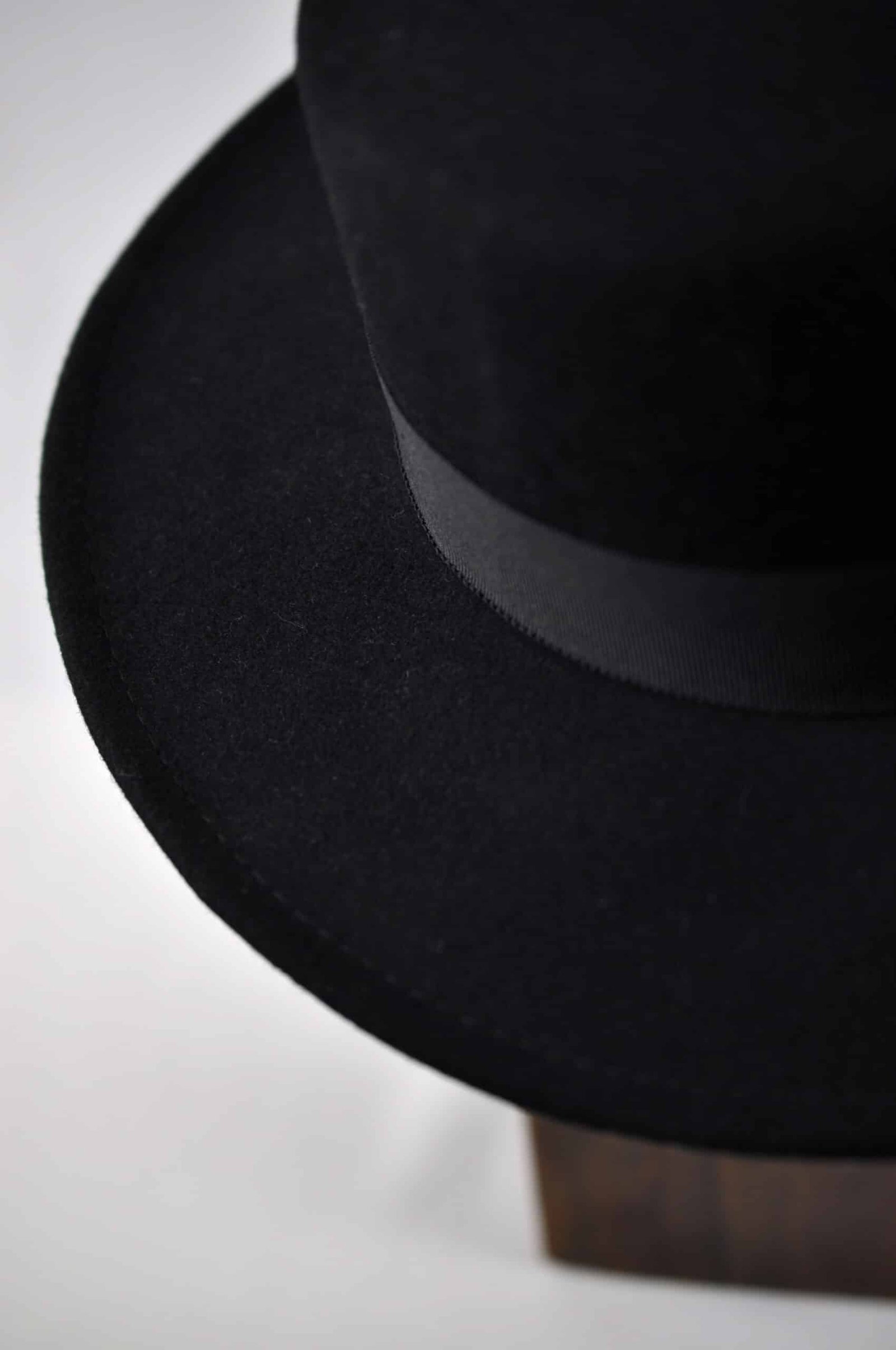 - Black leather belt style strap round hat