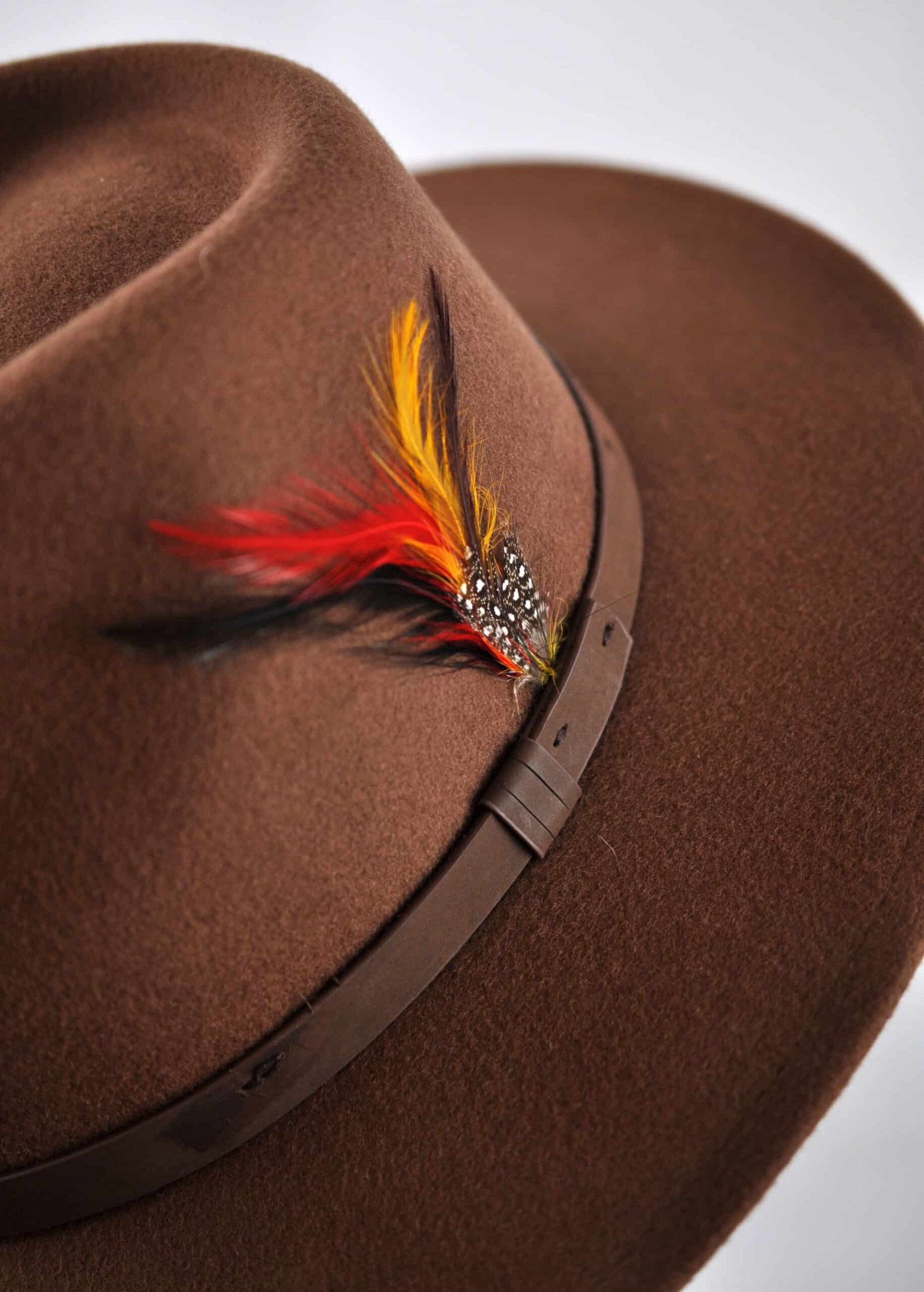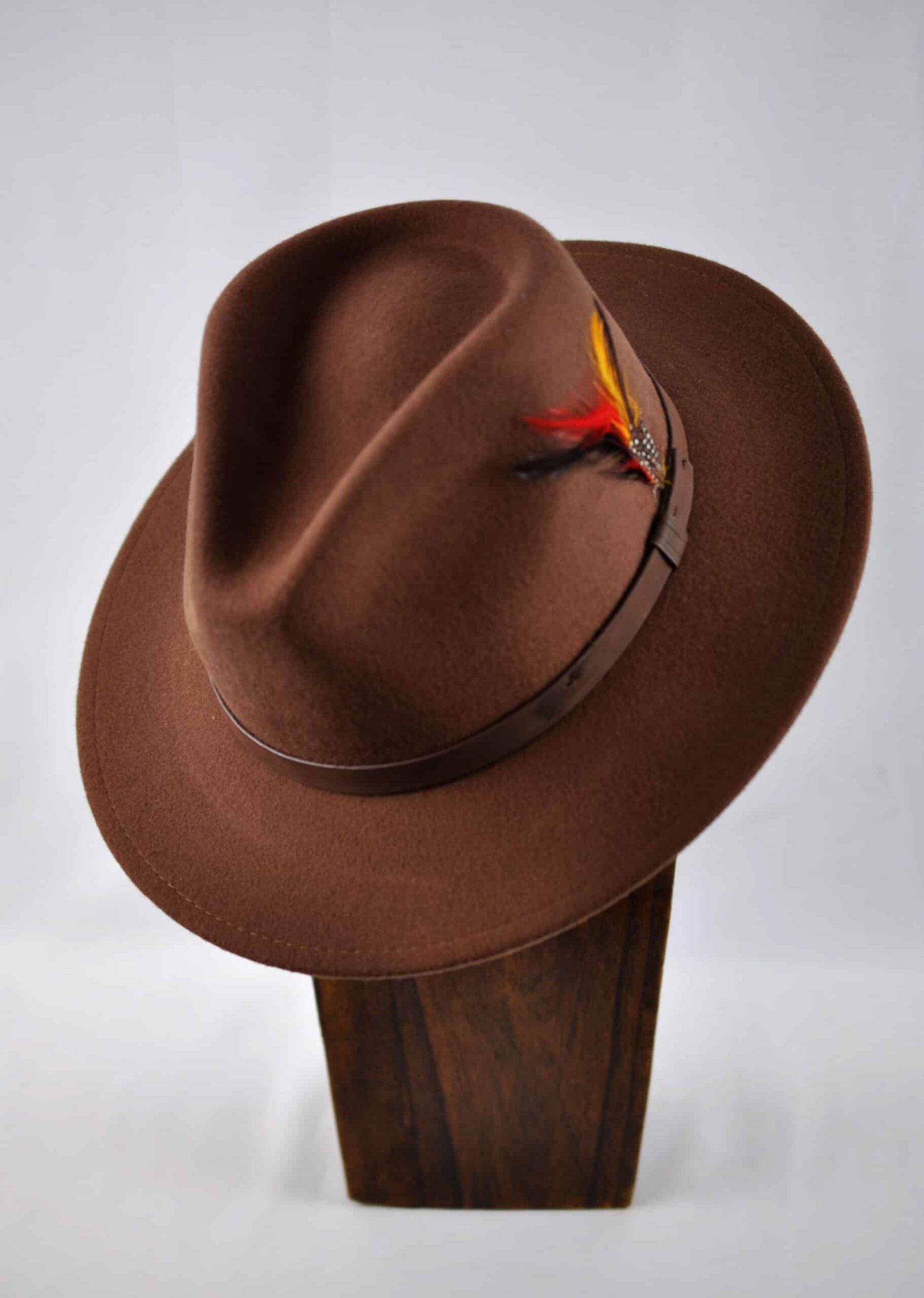 The Brown Fedora Hat with Feather features a removable feather !