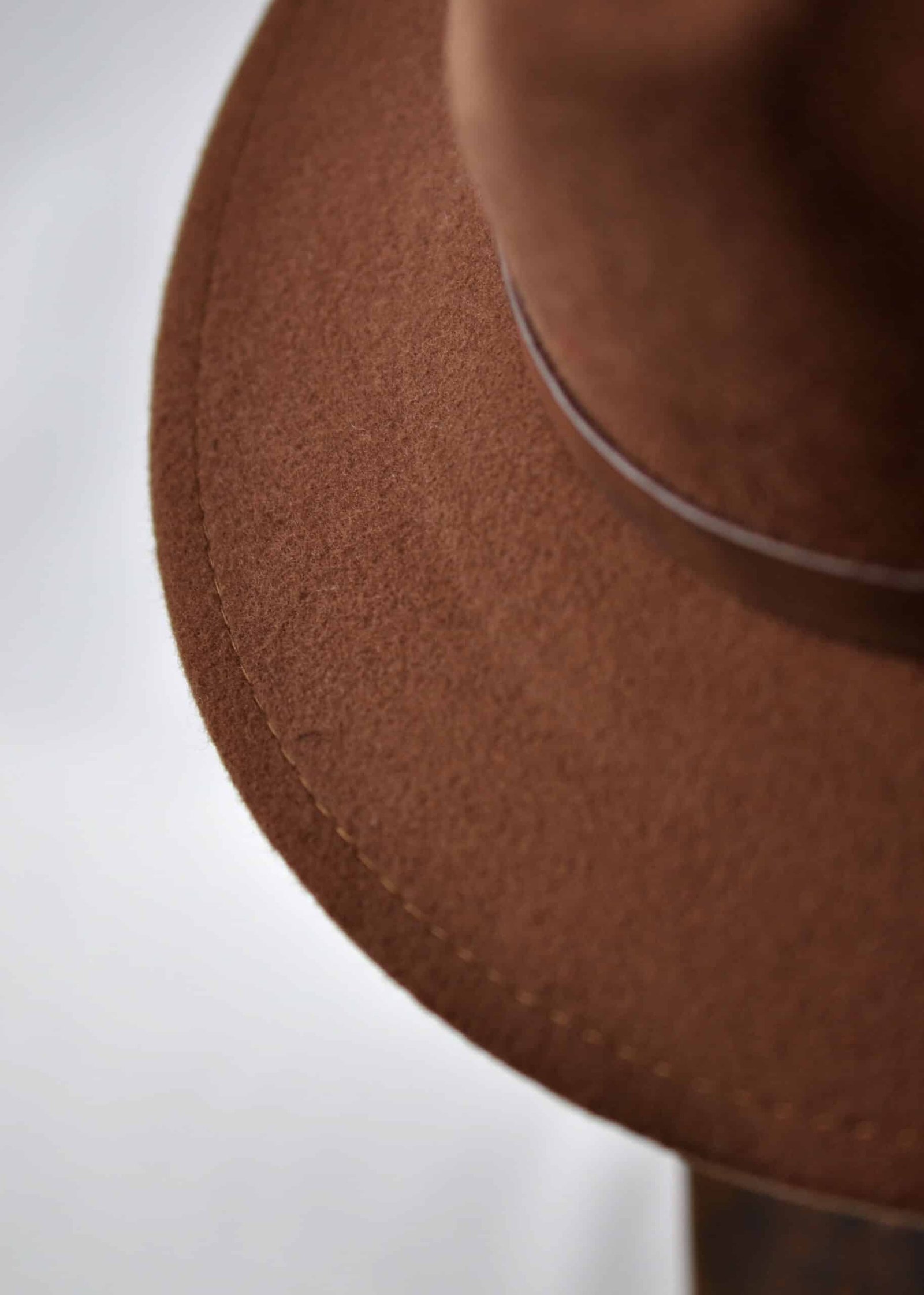 - Brown leather belt style strap round hat