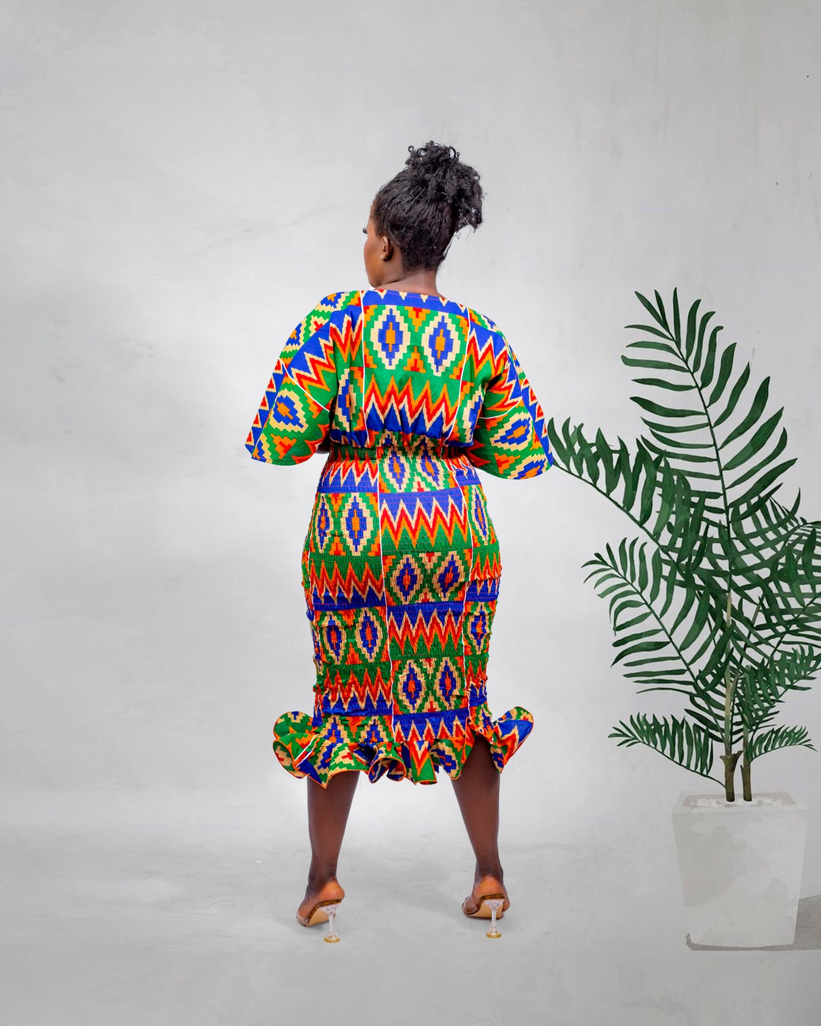 Crafted from 100% breathable cotton Ankara fabric, this dress feels light, soft, and easy to wear. The halter neck design flatters your shoulders and neckline beautifully, while the fitted bodice enhances your shape naturally. In addition, the multi-layered bottom flows gracefully, offering volume and texture without feeling heavy.
