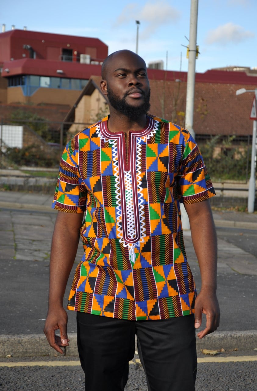 This is an immaculate and vibrant Kente Print Summer Shirt with embroidery detail on the neckline. Very stylish short sleeve shirt, perfect for elegant events as well as casual occasions. A very comfortable and versatile addition to your wardrobe.