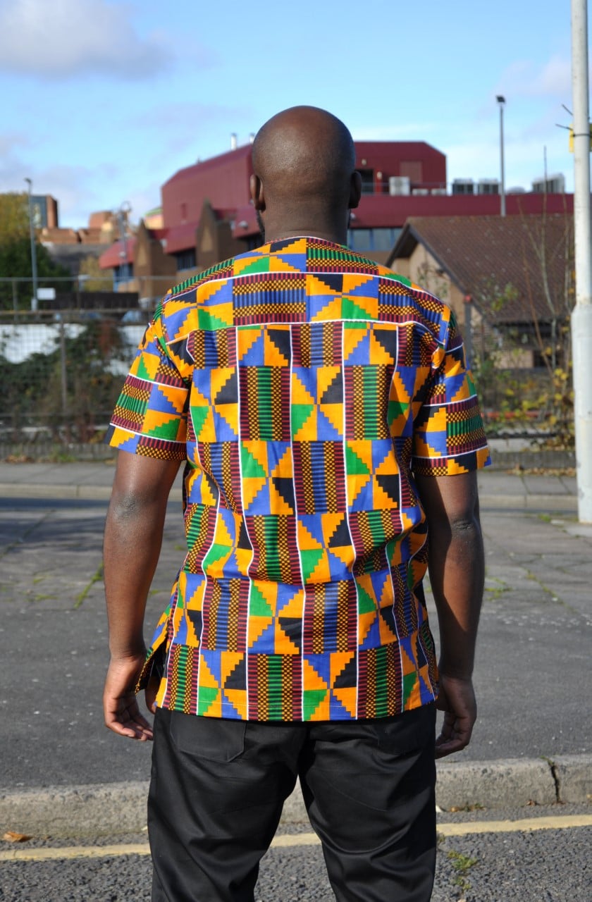 Worldwide Shipping is available for this short sleeve Kente print shirt.