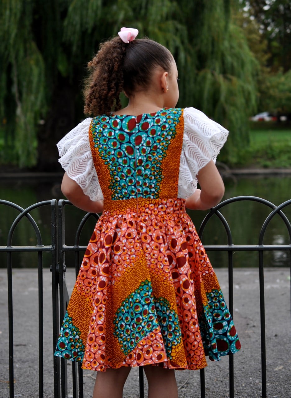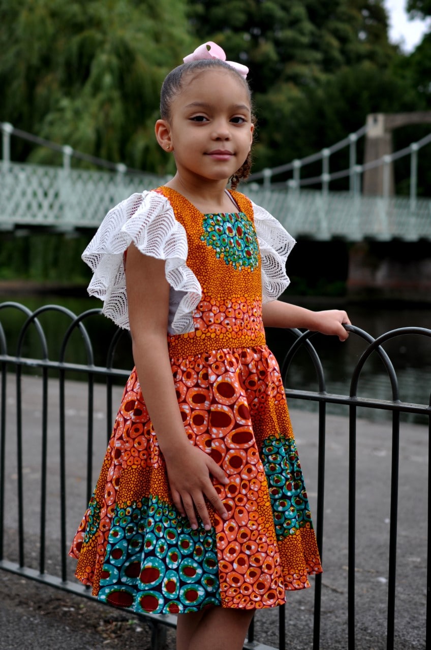 Our beautiful Kids Kids African Ankara Ada Lace Sleeve Dress is perfect for any weather and can be styled with matching hair clips/bows and some sandals to finish the look. The lace trim on the shoulders adds a touch of elegance and flair. Suitable for many occasions.