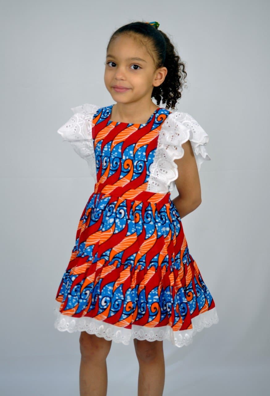 - Kids African Ankara Lace Trim Dress