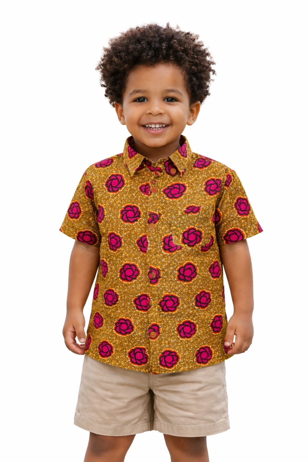 Featuring a classic button-up front and smart collar, this shirt offers a neat yet relaxed fit that allows children to move comfortably throughout the day. The lightweight cotton fabric is breathable, soft, and durable, ensuring all-day comfort whether worn to school events, birthday parties, cultural celebrations, or family outings.