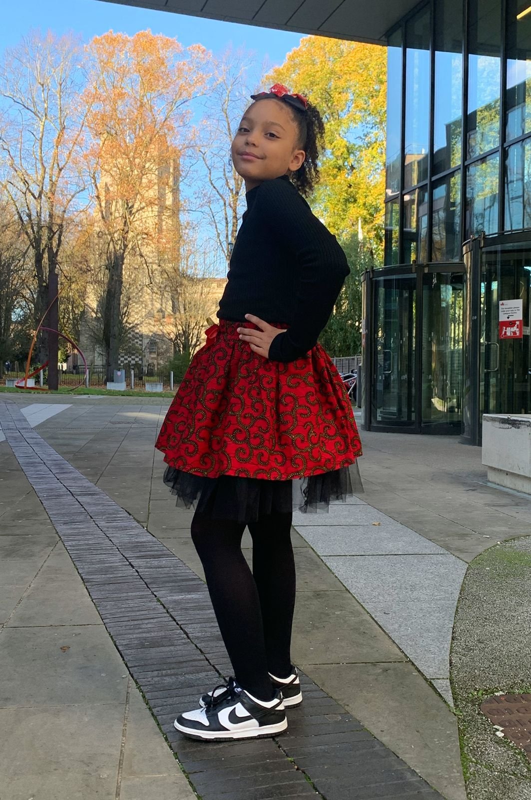 This charming Kids Skirt in Ankara print beautifully combine vibrant African-inspired fashion with a playful, modern twist. Each skirt features bold and colorful Ankara patterns on the top layer, paired with a soft tulle underlay that creates a delightful tutu-like effect. This unique design ensures a standout, fairy-tale look that kids will adore, perfect for making every occasion feel extra special.