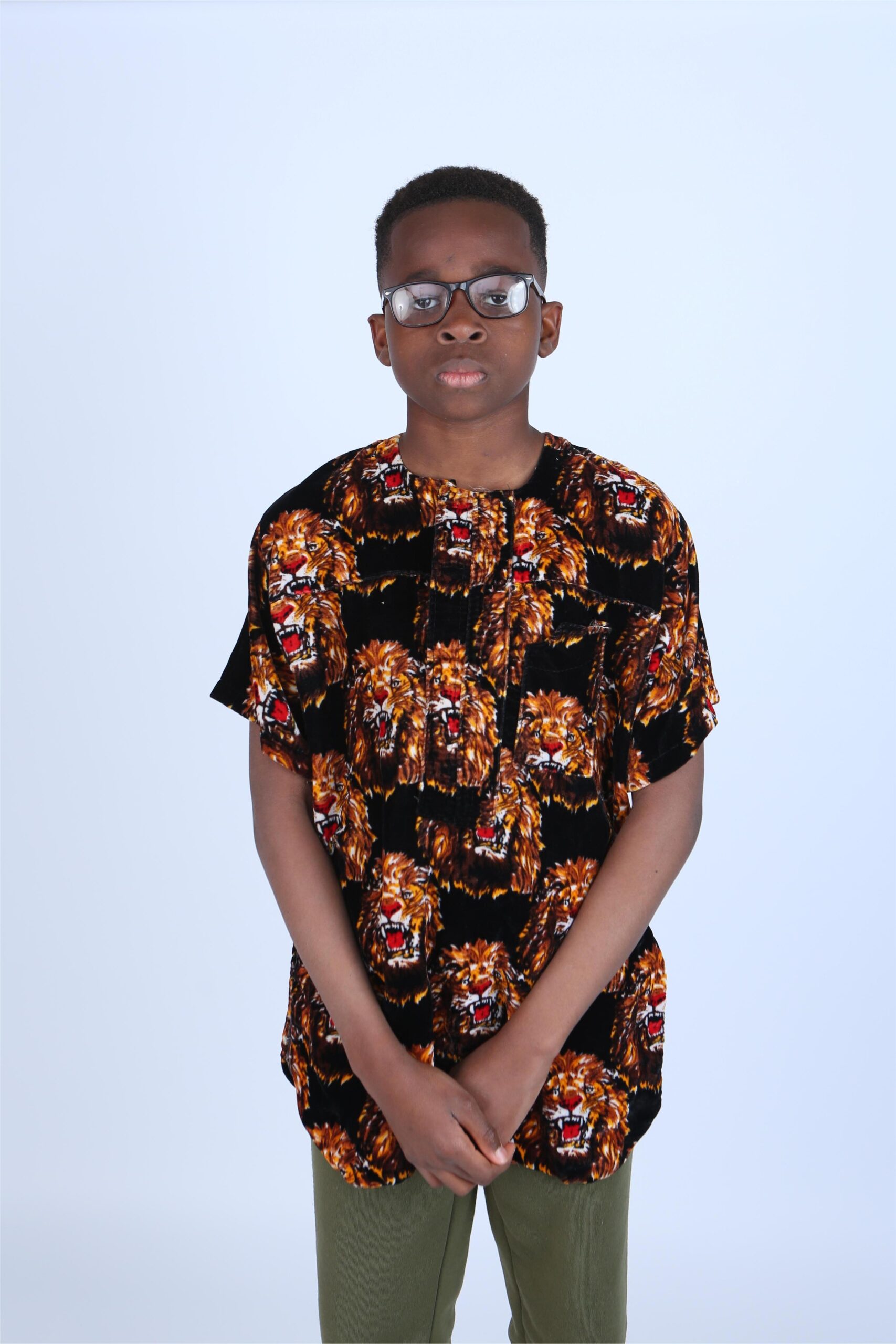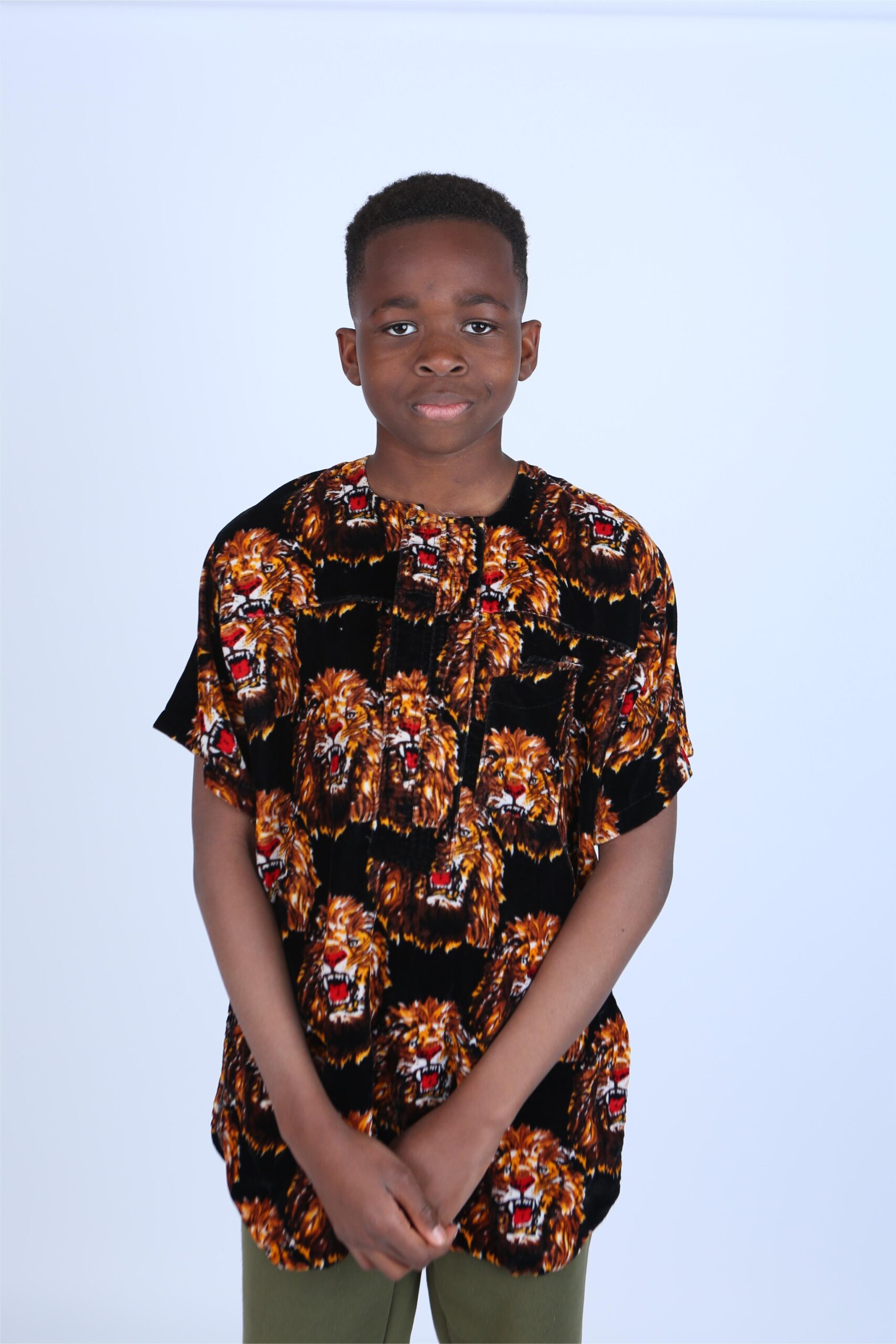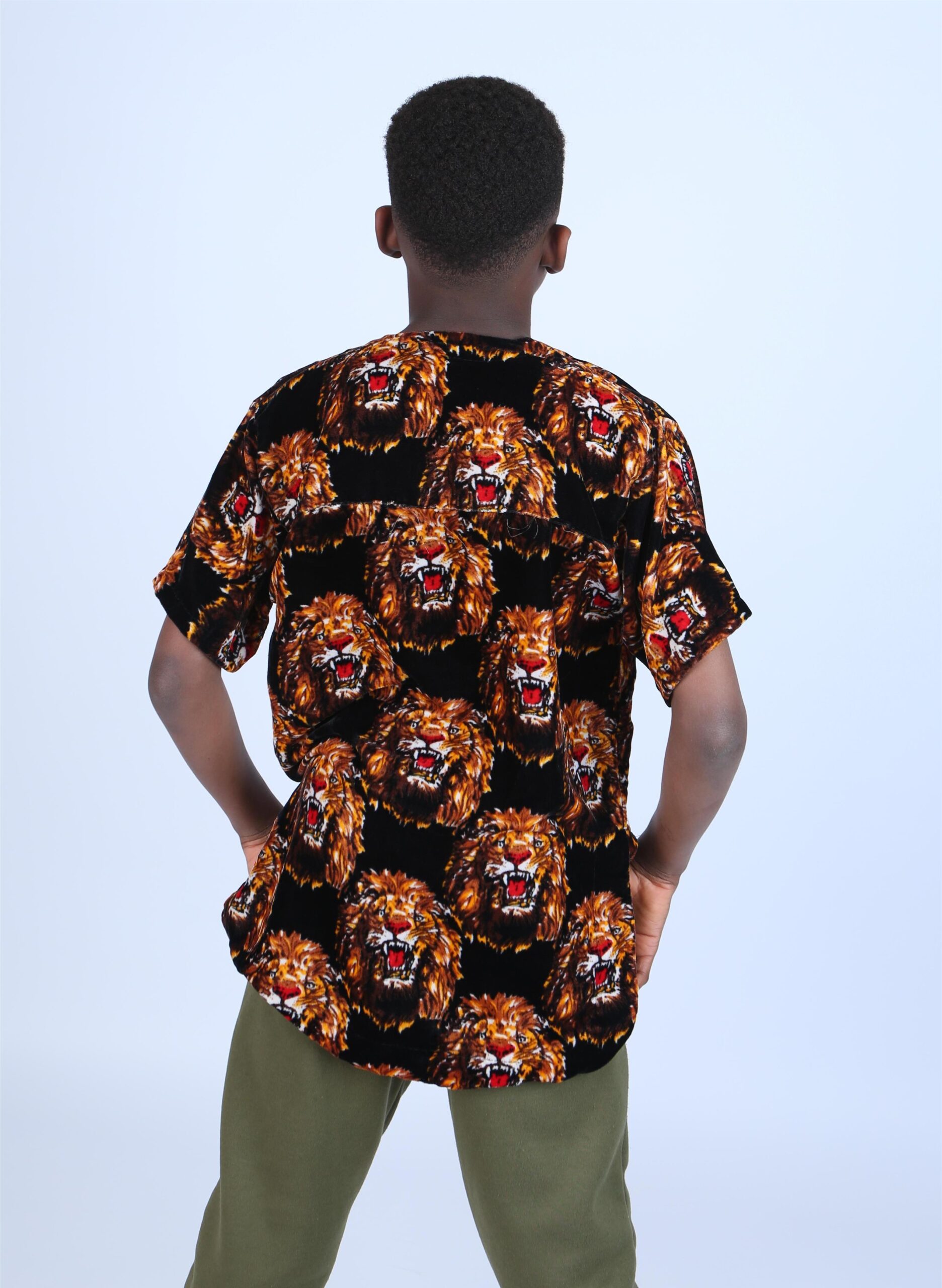 Designed specifically for children, this version of the Isiagu preserves all the elegance and meaning of the original while offering a comfortable, kid-friendly fit. The shirt features a bold lion head motif throughout — a symbol of strength, courage, and leadership. Worn by young ones, it reflects a sense of identity, belonging, and confidence in their roots from an early age.