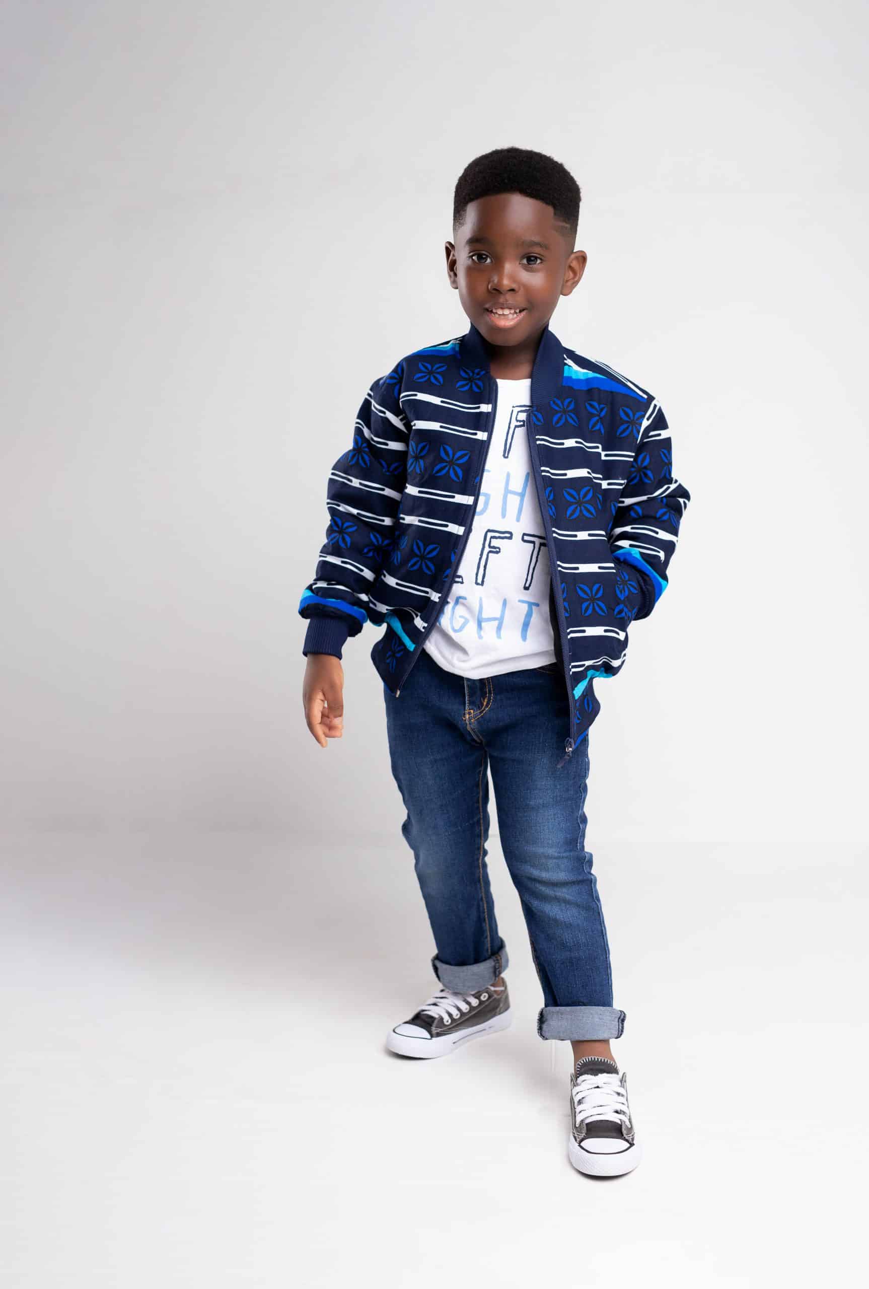 Your child is sure to be the best dressed in this stylish Bomber Jacket with the African fusion.It is fully lined and has a warm. It also features two pockets and a strong zip front !