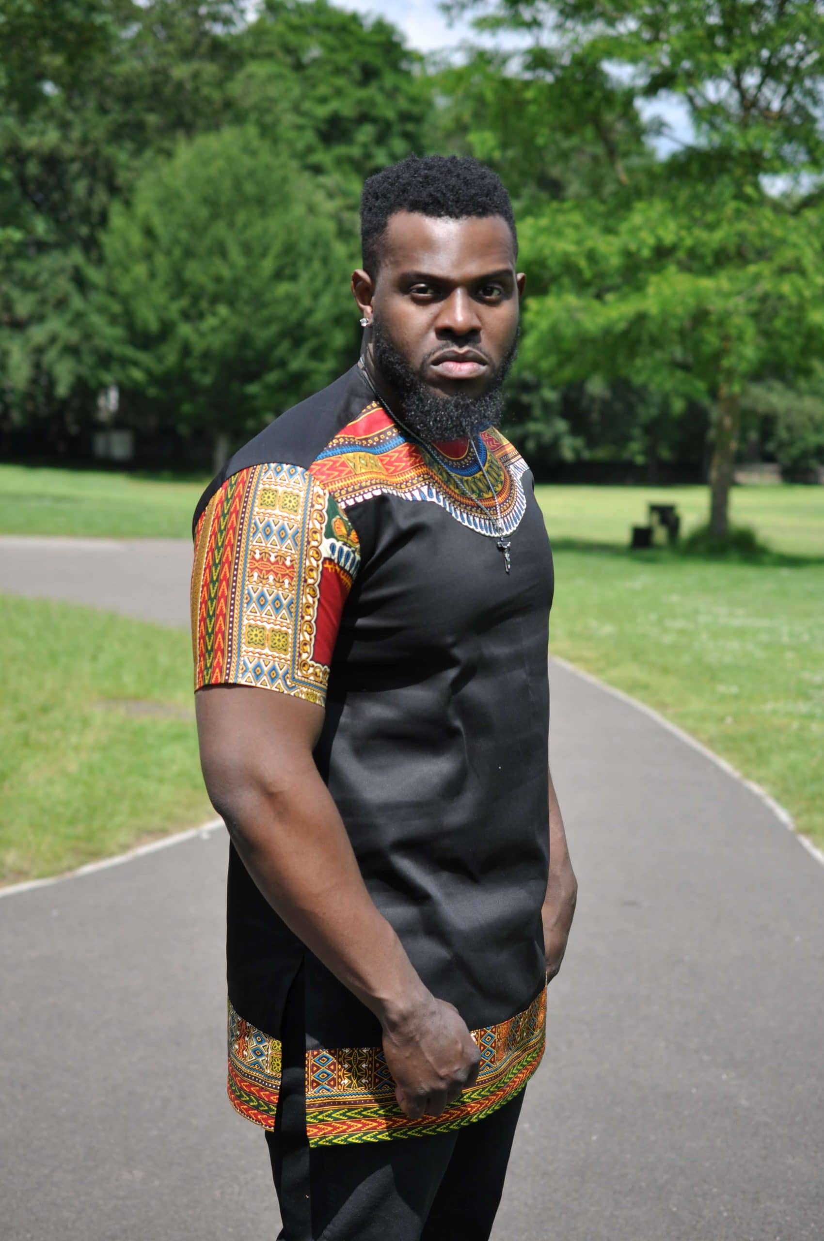 This Kojo African Men’s Shirt is perfect shirt for every day or casual wear! The added bonus is that we can custom make this shirt to fit you perfectly. African inspired with a modern European twist, this short-sleeve black and African dashiki print shirt allows you to feel comfortable and free.
