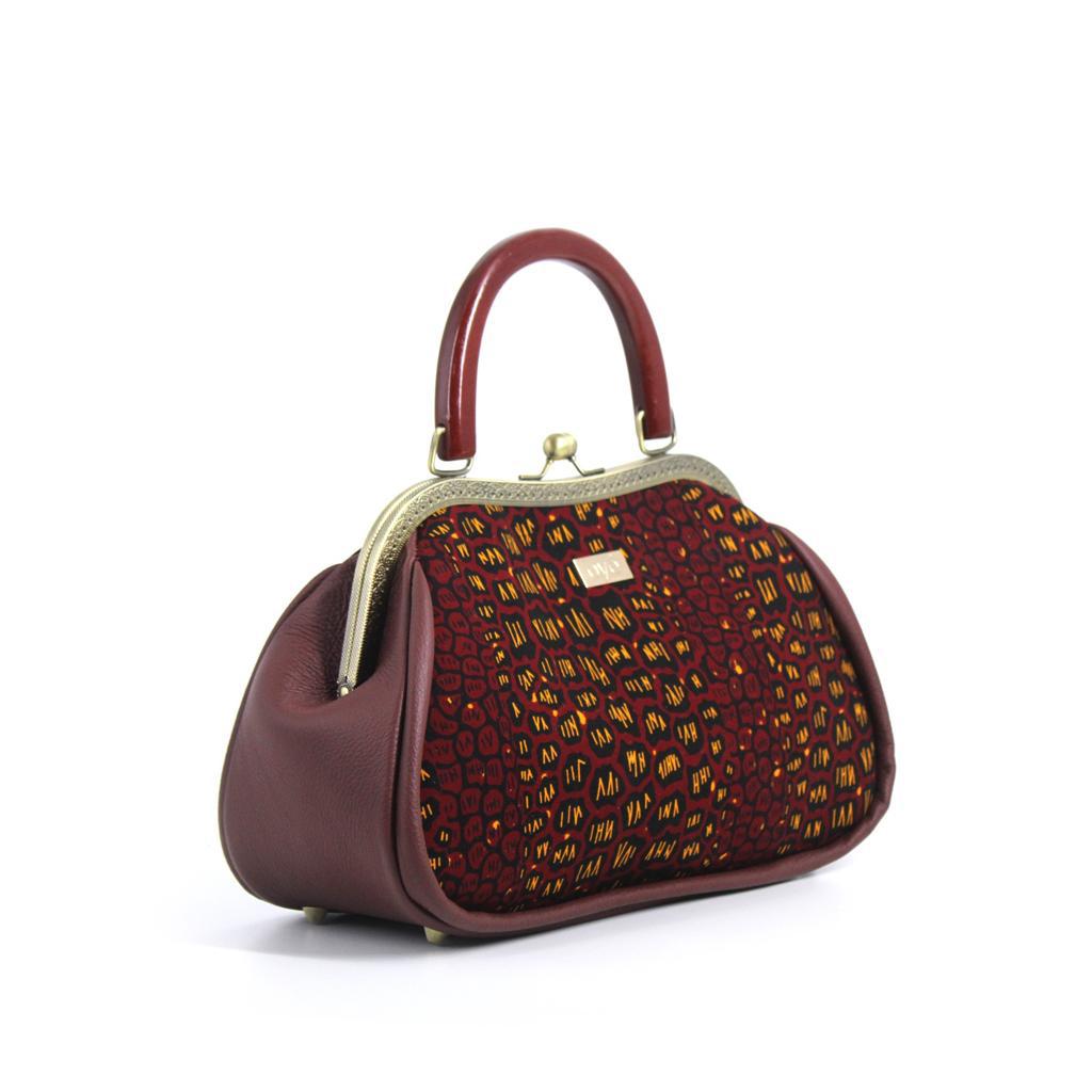 Kusiwaa Oye Ankara Purse has beautiful curves and the bronze tone frame gives it a vintage feel as well as a modern feel