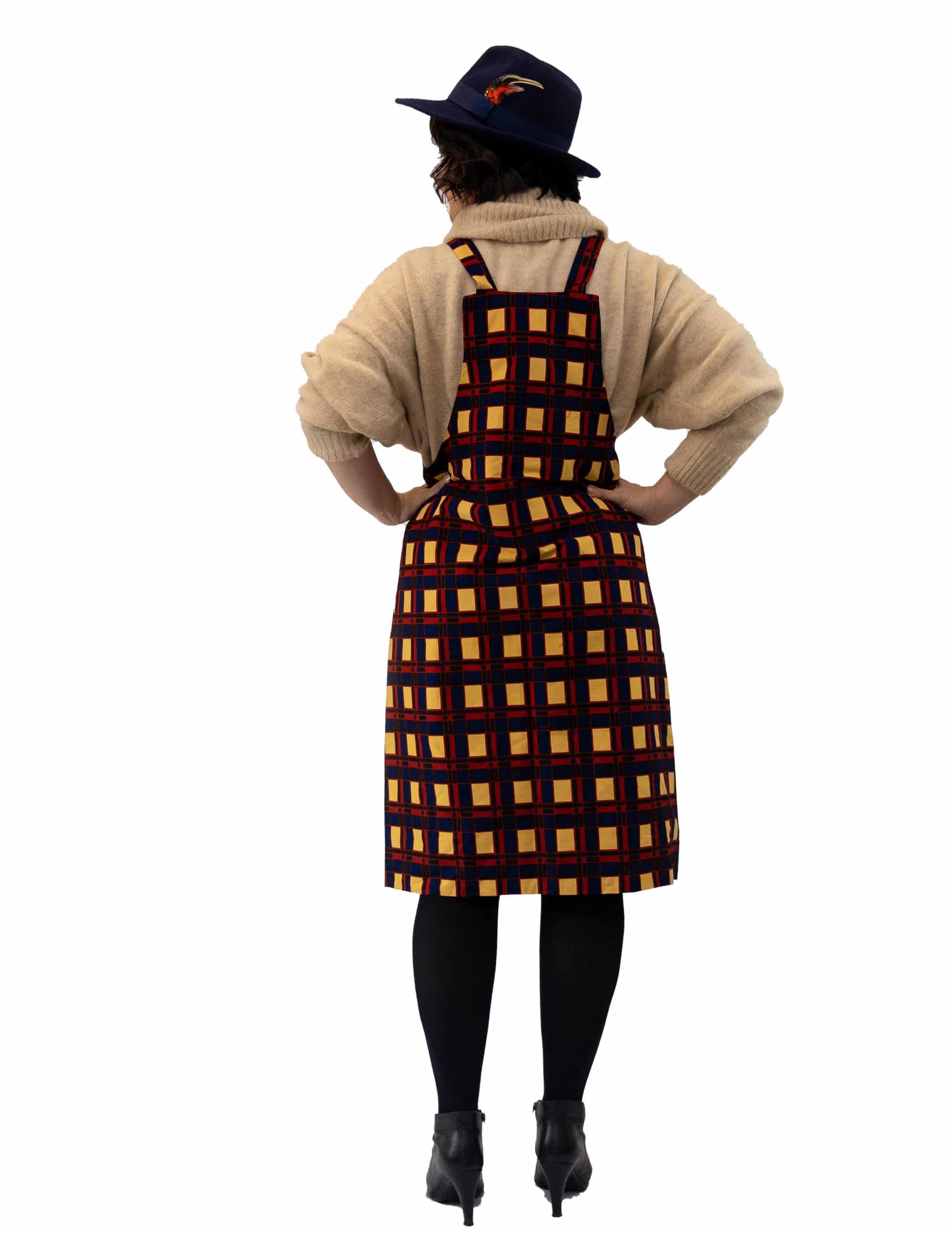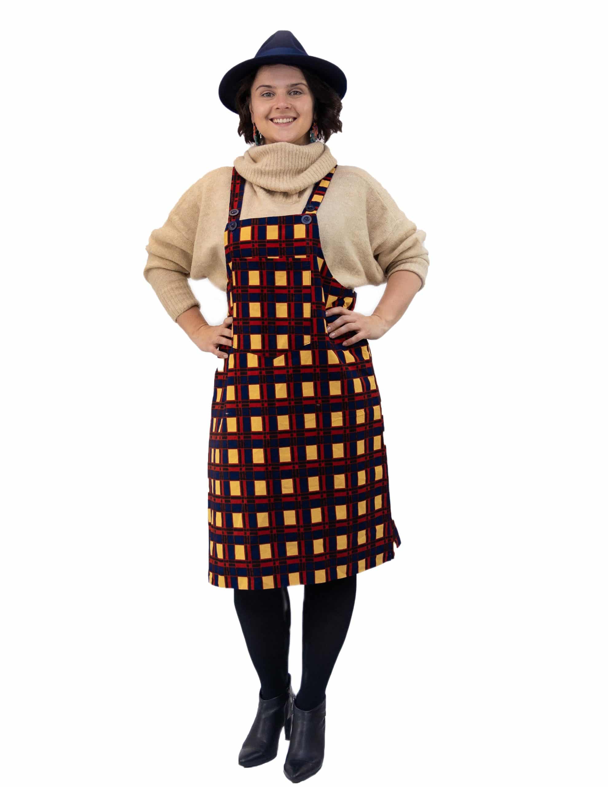 This Latasha African Kente Print Pinafore Dress is great for every day wear. In addition, it can easily be partnered with a long sleeve top or jumper/turtleneck , it can be styled up or down to be suitable for every season of the year.It also has convenient front pocket storage.