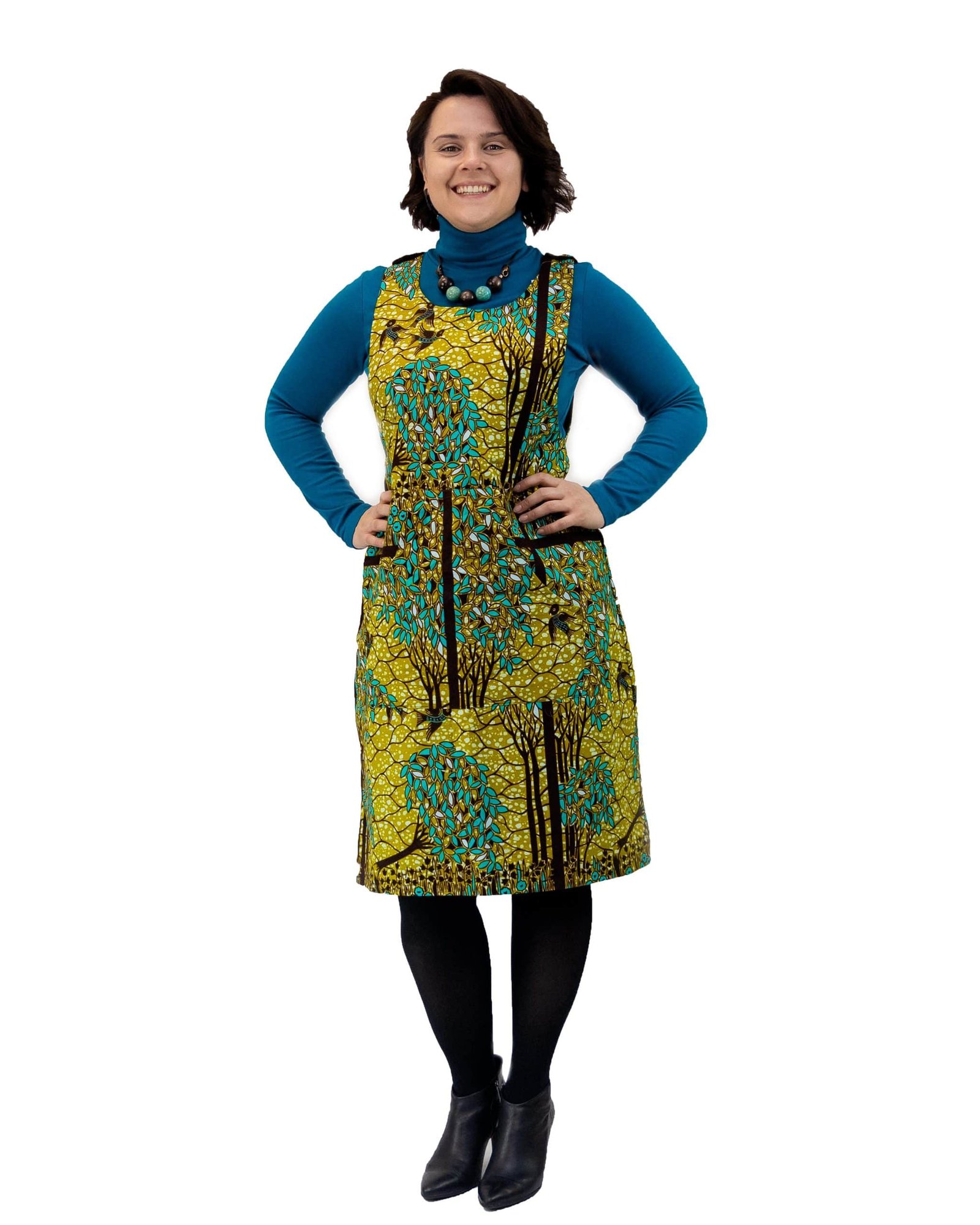 This Layla African Kente Print Pinafore Dress is great for every day wear.It can easily be partnered with a long sleeve top or jumper/turtleneck , it can be styled up or down to be suitable for every season of the year.It also has convenient front pocket storage.