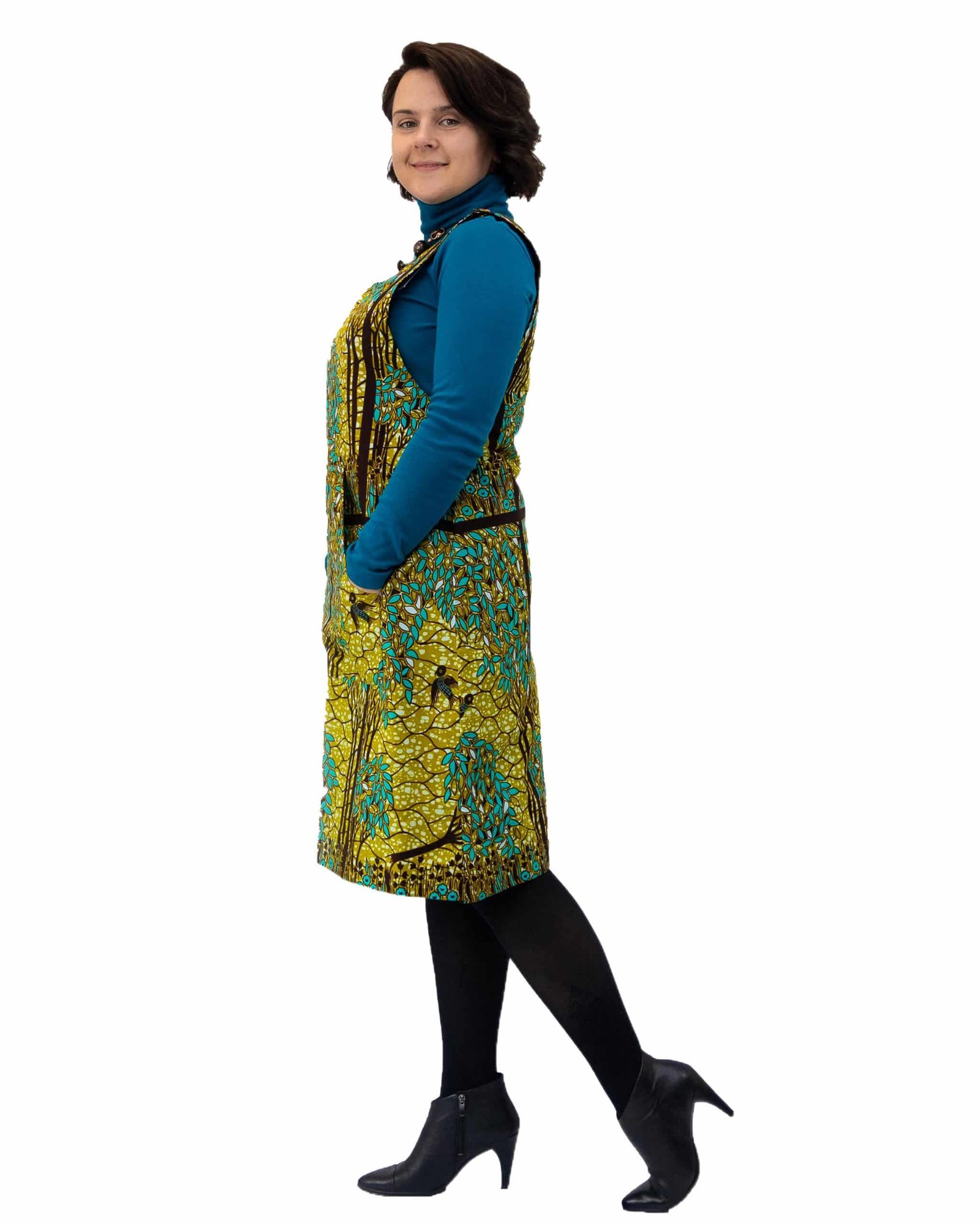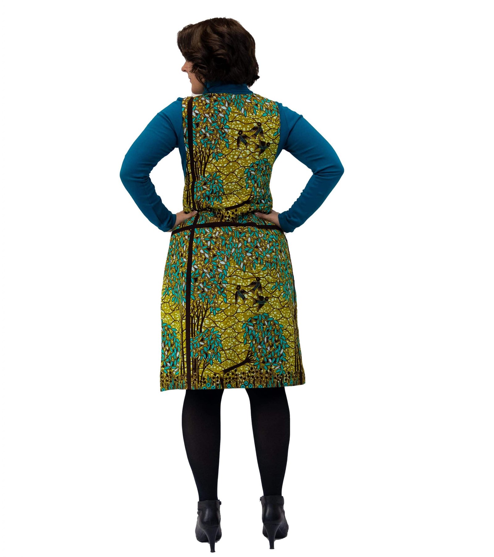 Purchase as displayed or customise the design. Choose a different African print fabric or change the length to make a mini dress.