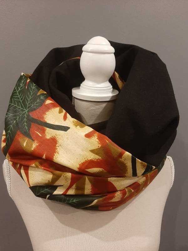 This Leaf Print Ankara Unisex African Infinity Neck Scarf Snood is unique, hand-made as well as being reversible. It is made of 100% Cotton with high quality and durable Ankara print fabric and is fully lined with a Polyester Wool blend to keep you warm and cosy!