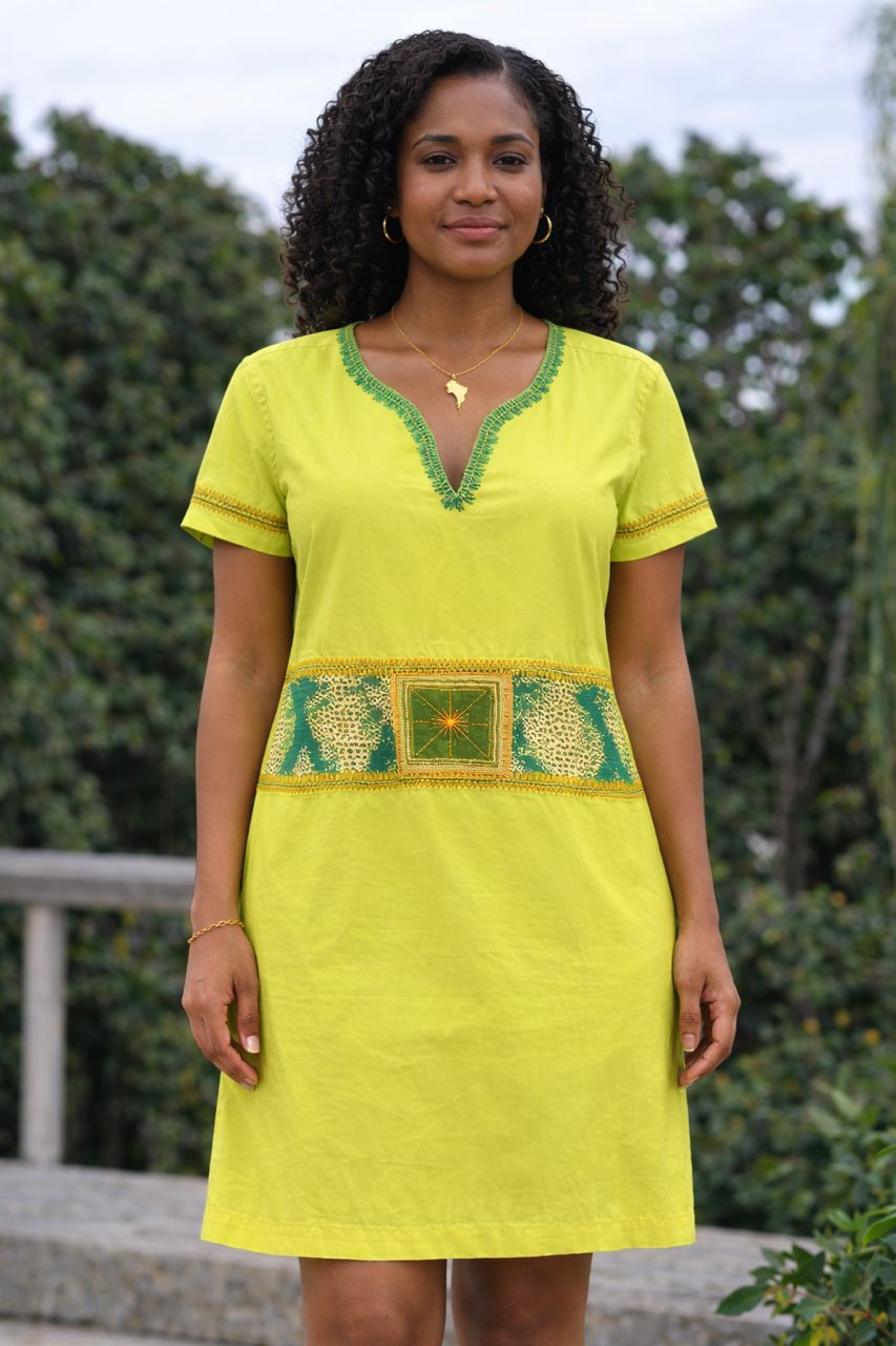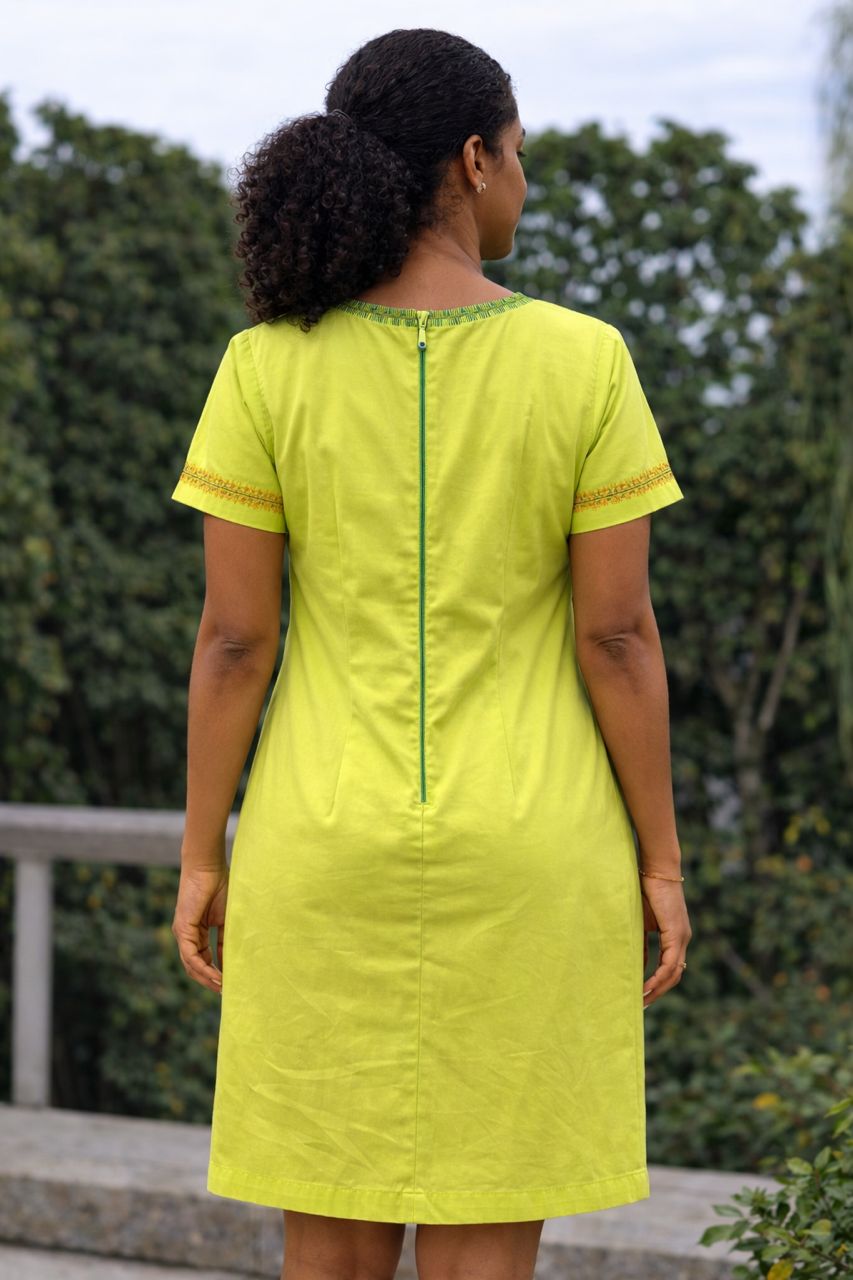 Fashion feels even better when it is bright, comfortable, and easy to wear, and this dress offers exactly that. The vivid lime green tone, delicate embroidery, and relaxed shift shape create a look that feels cheerful, feminine, and effortlessly stylish.