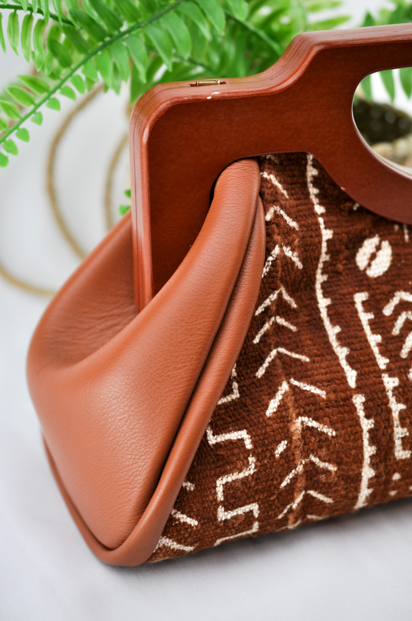- Exterior: Bogolan Fabric/ Mudcloth/ leather/ gold detailing/ wooden frame & African design.
