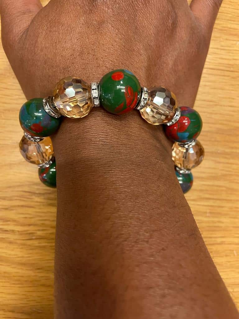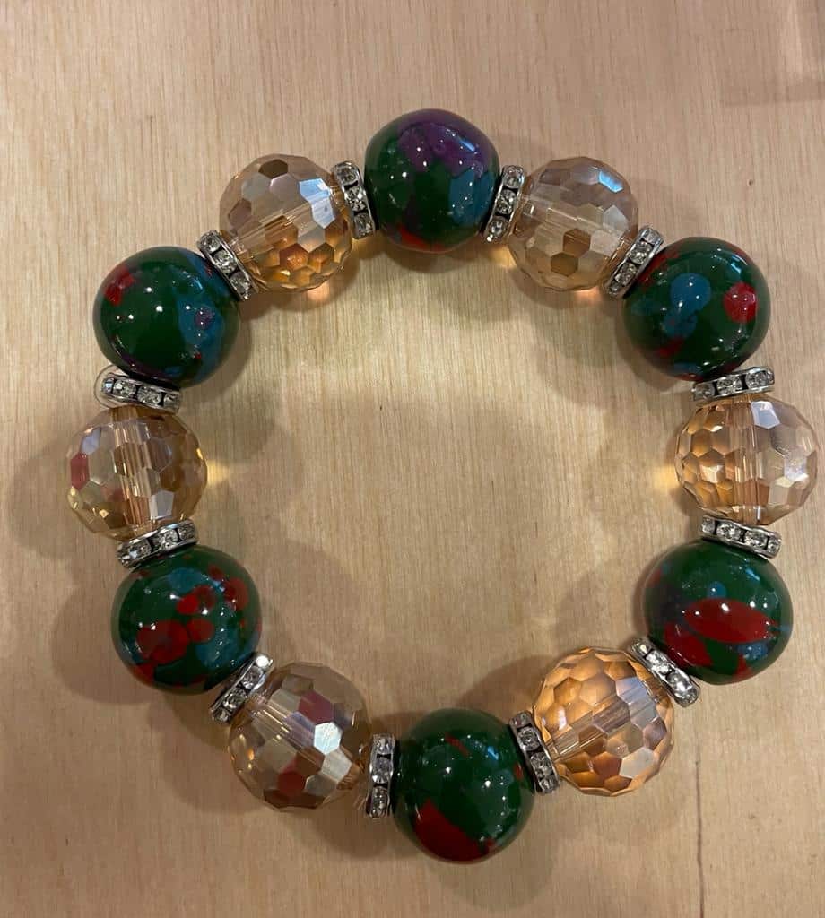 This will go with any outfit. By adding it to any plain outfit to create a one-of-a-kind abstract look. These bracelets are handmade in Ghana from recycled materials, making them ethical and environmentally friendly. The bracelet is also elastic and can be stretched to fit a larger wrist.