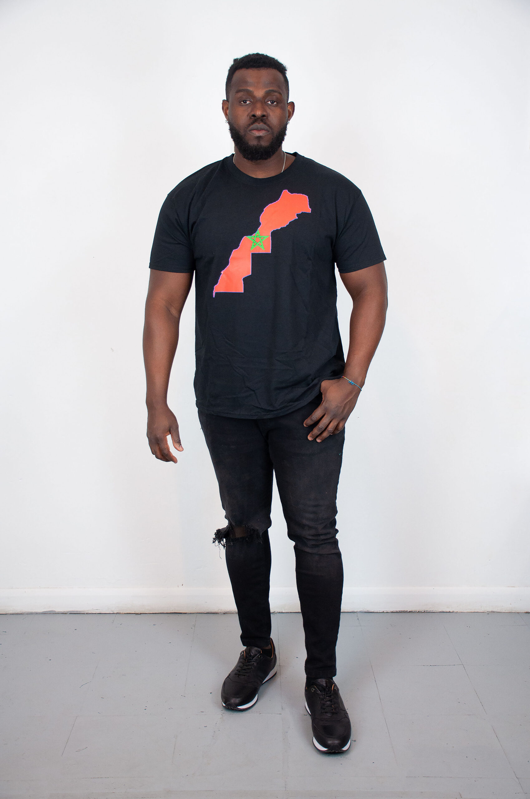 - Main colours: Black/ Green and Red (Morocco flag colours)