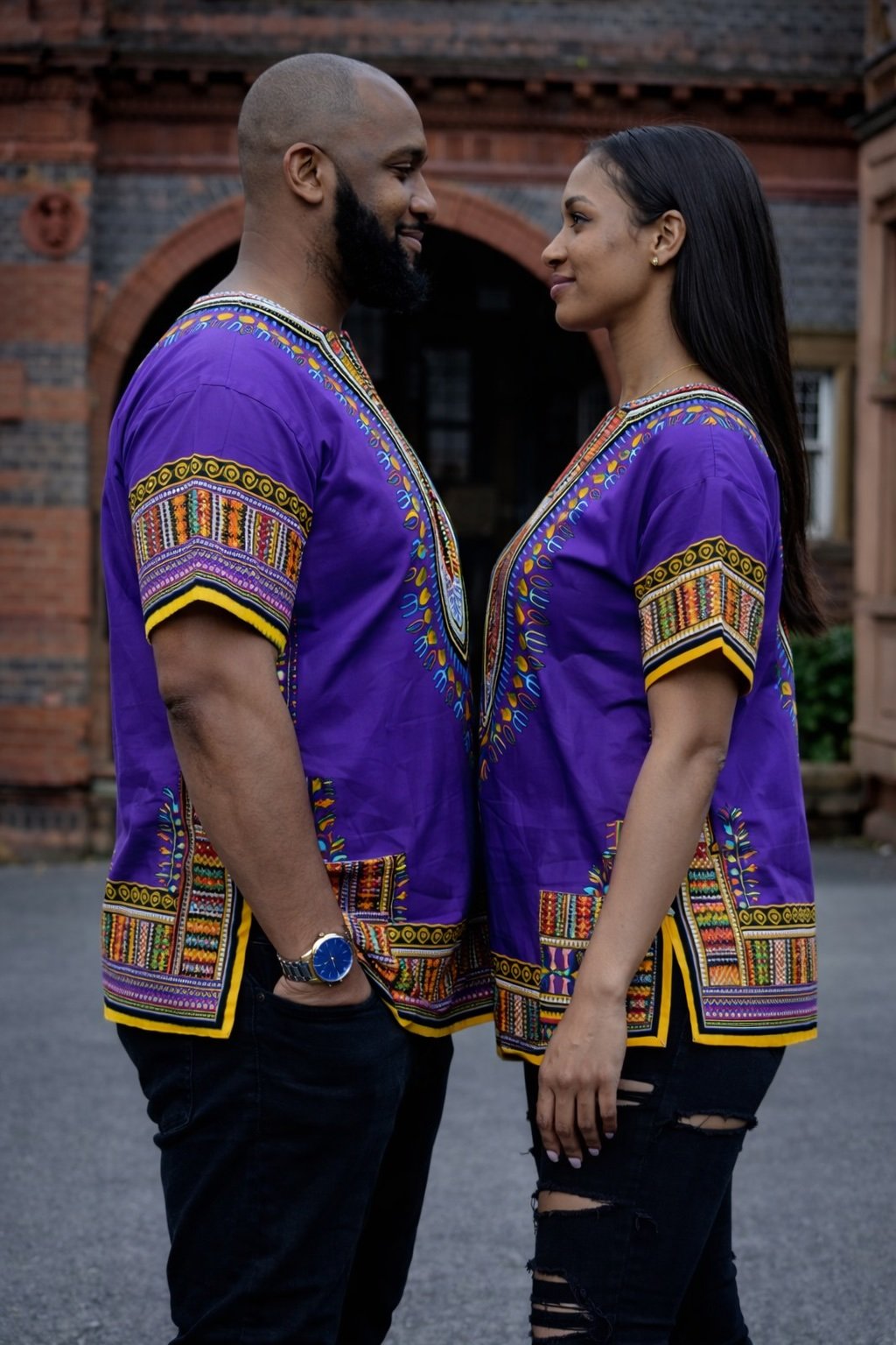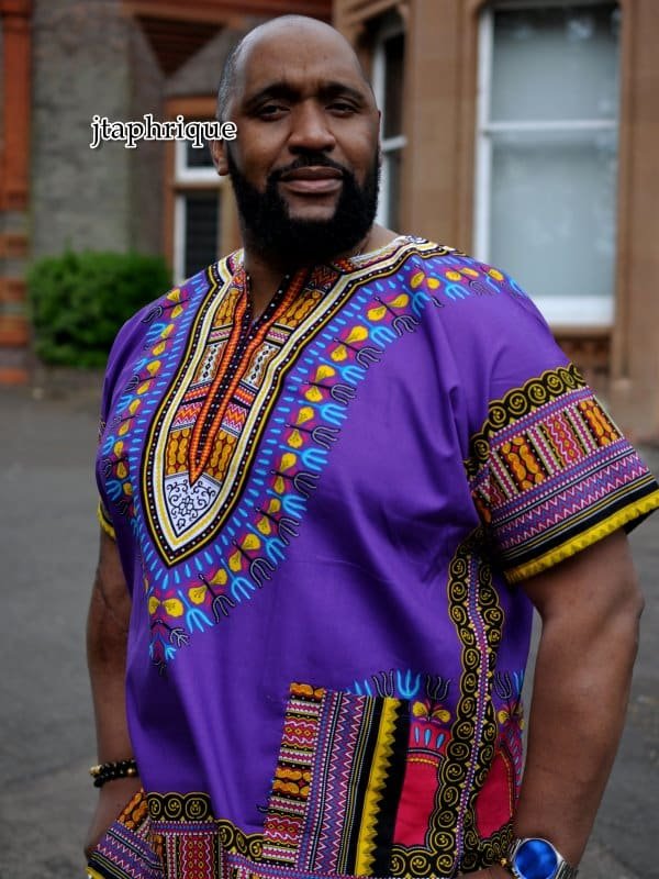 Grab an amazing bargain with this men’s purple traditional African dashiki shirt! It is loose-fitting and made from premium quality fabric. Treat yourself or someone special to this fabulous men’s shirt / dashiki. Ideal as a gift for him. Order in many sizes including plus size XXL. Free UK delivery is available and we ship worldwide!