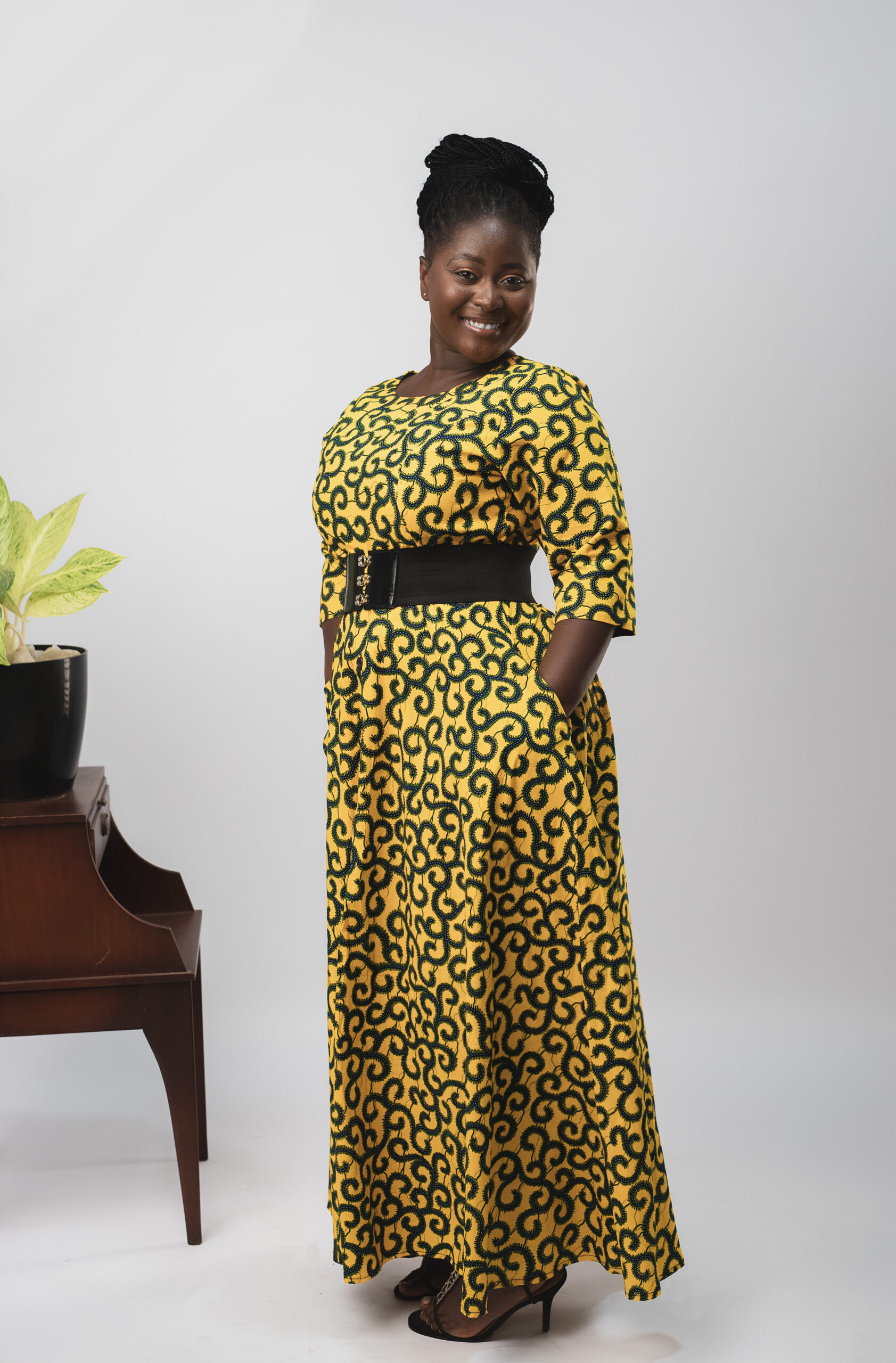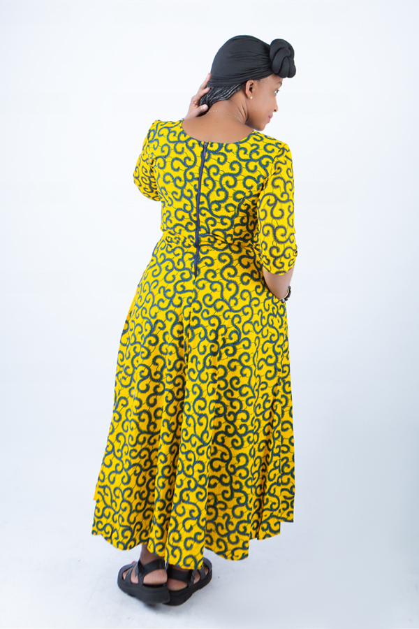 Our Ankara fabric showcases vibrant colours and intricate patterns that represent the rich cultural heritage of Africa. Moreover, each dress is a unique work of art, reflecting the artistry and creativity of African craftsmanship. In addition, this long A-line dress is perfect for both formal occasions and casual gatherings. Whether you’re attending a wedding, a gala, or simply looking to make a statement at a special event, this dress will make you feel confident and stunning.