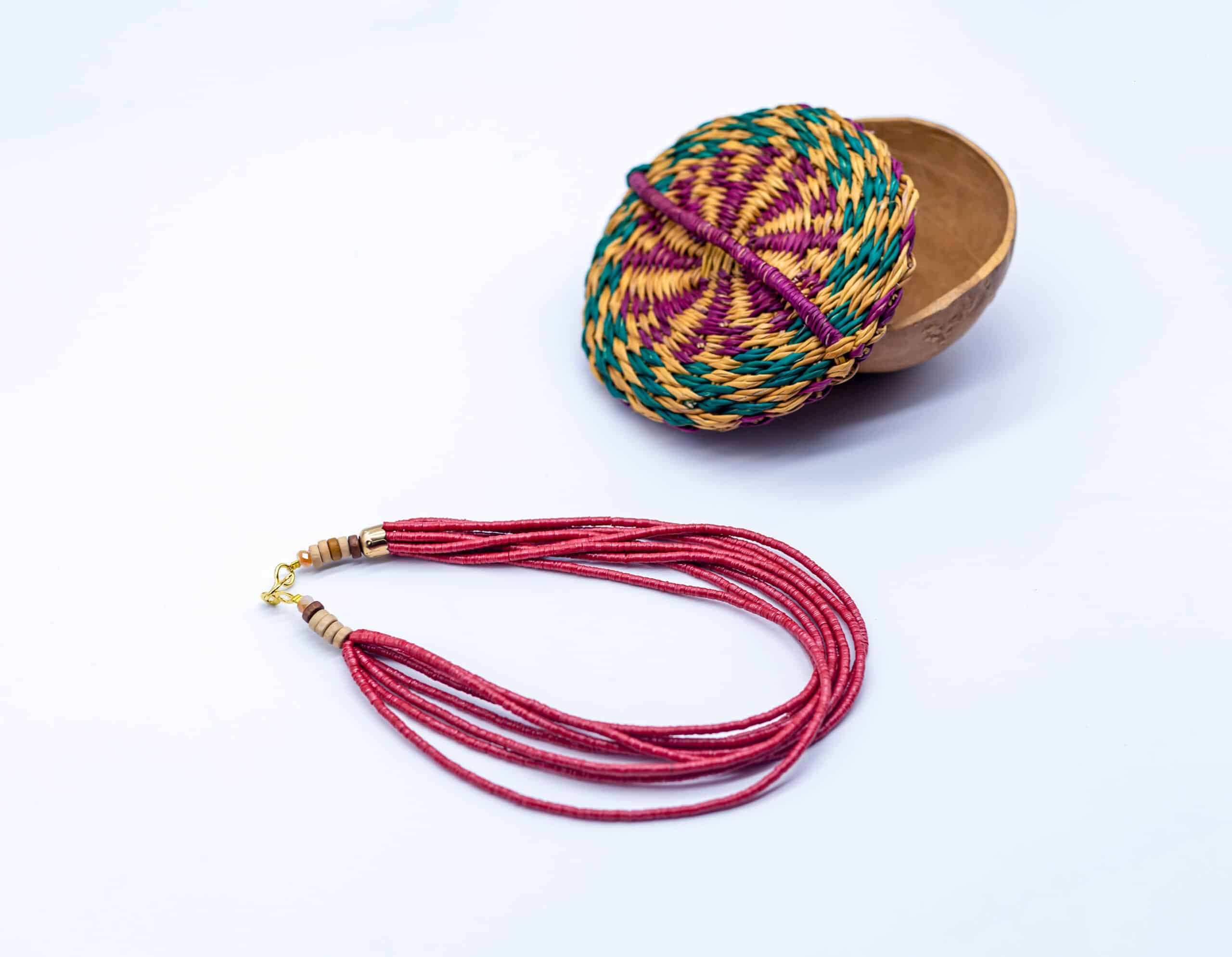 Furthermore, the necklace’s distinctiveness extends to its ends, where the strands elegantly converge and are artfully secured with rustic wooden beads. Designed for ease and security, the necklace is equipped with a practical claw clasp, ensuring a comfortable and reliable fit. In addition, the clasp allows for effortless wear and removal, making this accessory as convenient as it is stylish.