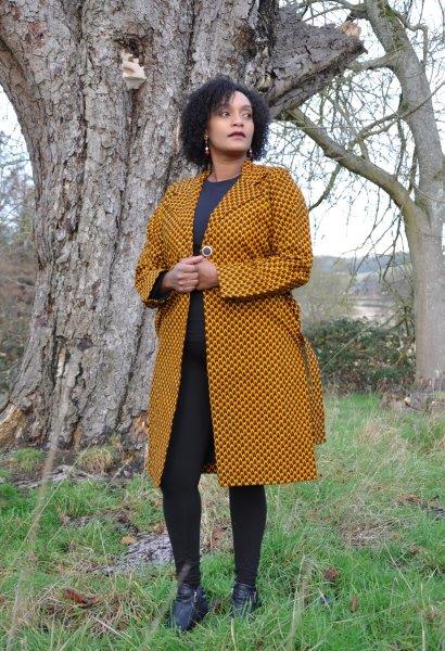 Dress to impress this autumn with this lovely ladies mustard yellow African Ankara print trench coat. This stylish coat is hand-made, lined and is ideal for any occasion.