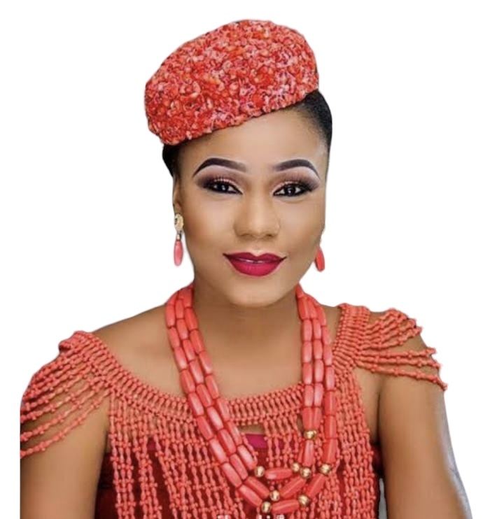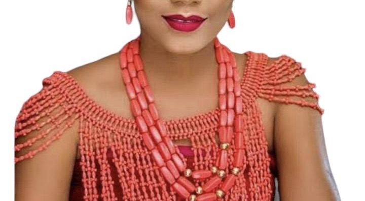 Furthermore, the centrepiece of this set is the breathtaking bead cape, meticulously handcrafted with Nigerian beads intricately woven together in diamond shapes. Moreover, this cape elegantly drapes over the shoulders, adding a touch of sophistication and royalty to any ensemble. Adorned with the classic Nigerian red beads, the cape is a true work of art that captures the essence of Nigerian craftsmanship.