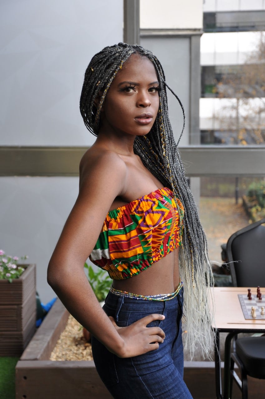 This orange Kente African print bandeau crop top is a perfect match with a skirt or some shorts for the summertime. Pair with our pretty waistbeads and a necklace to bring out the bright colours.