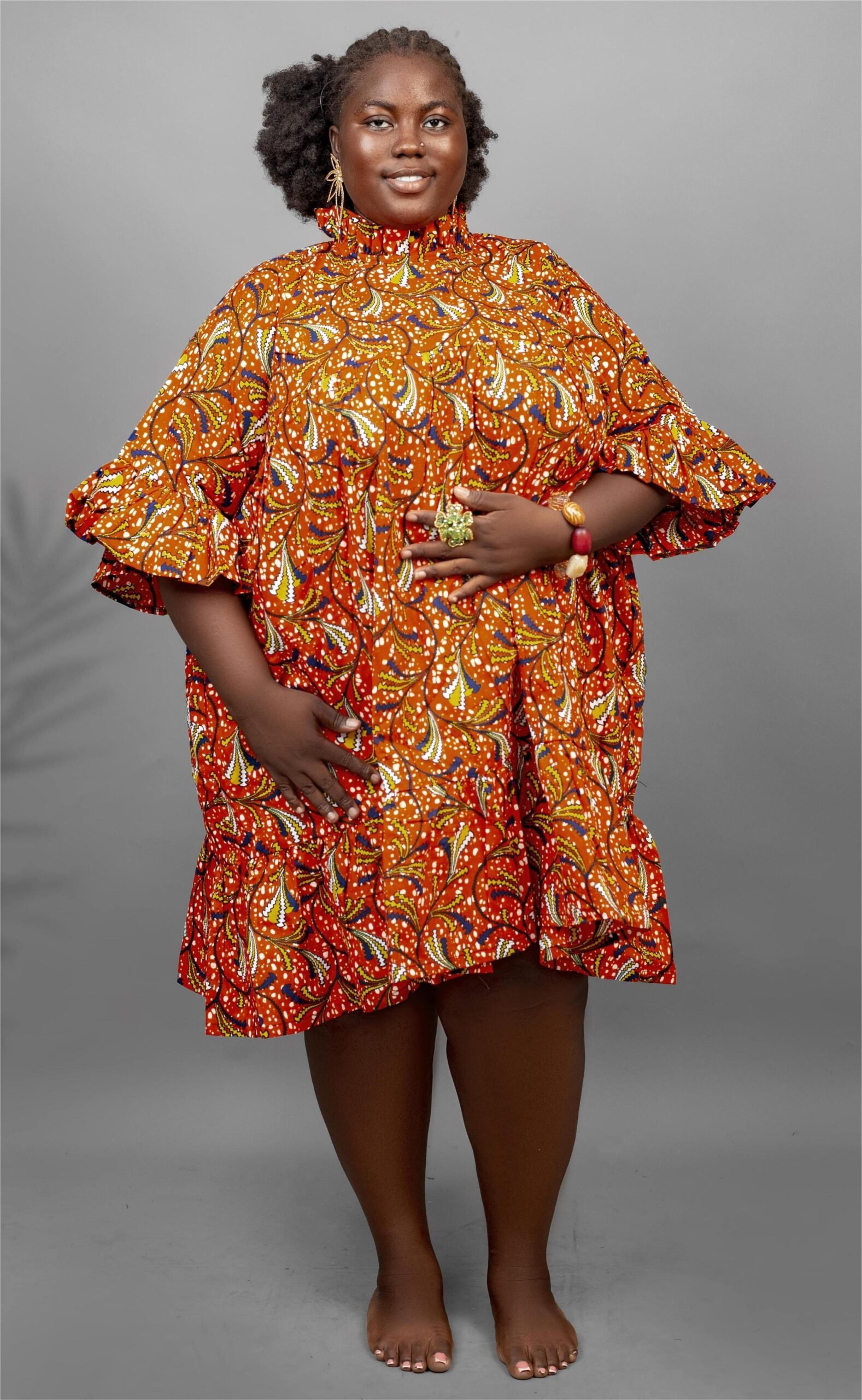 - Details: African print / flared sleeve