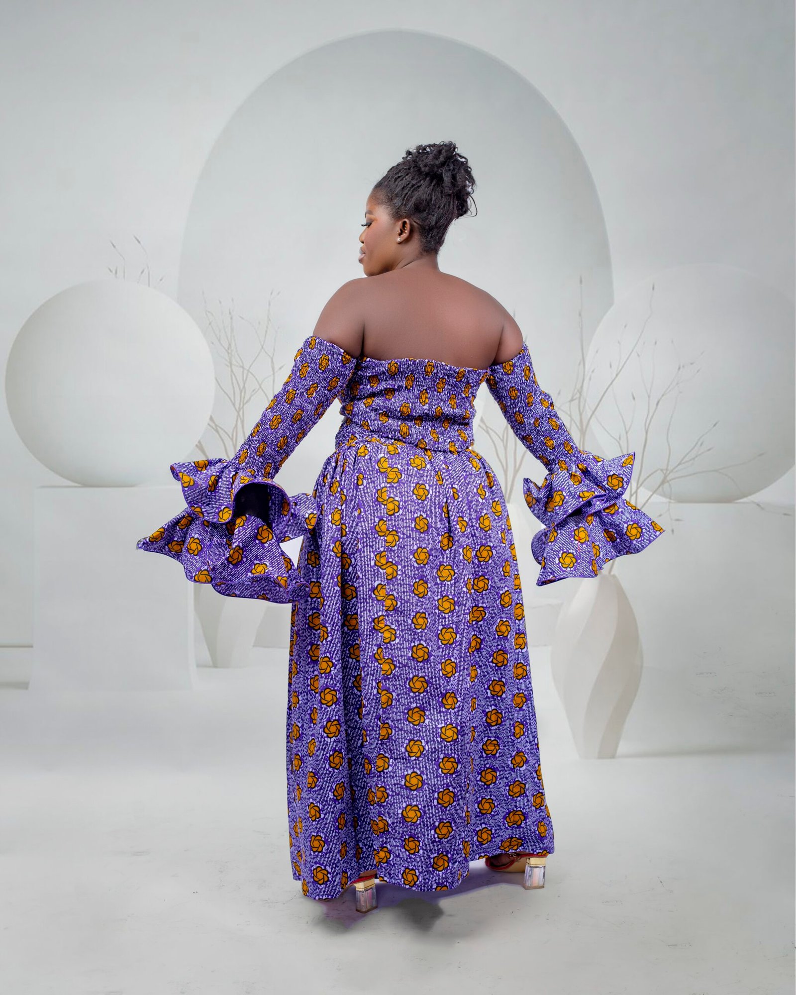 Purple African Ankara Maxi Off-Shoulder Two-Piece Dress