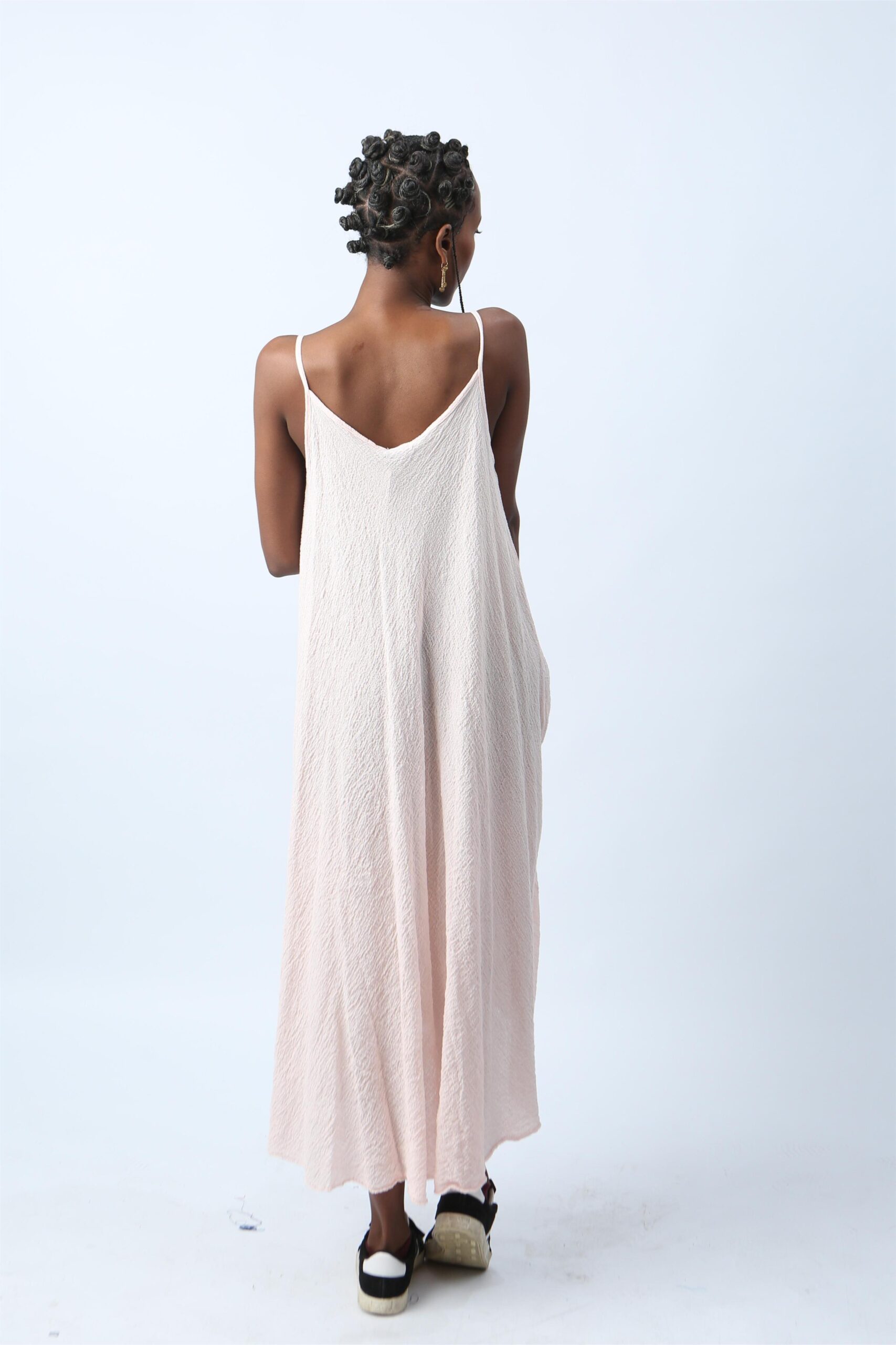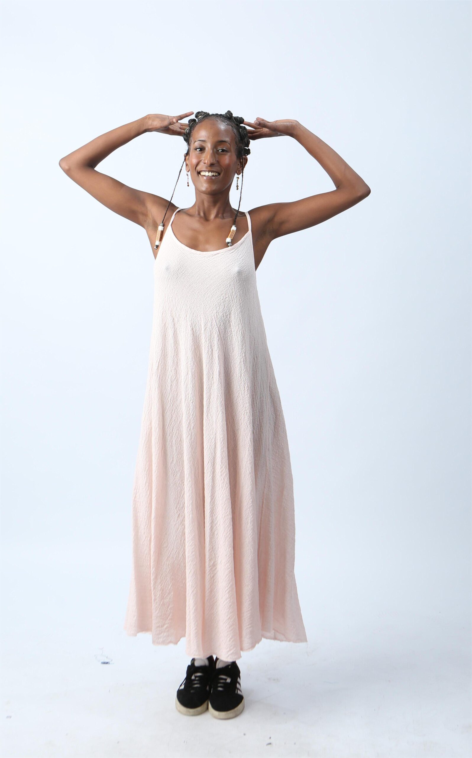 Crafted from soft, breathable fabric, the dress drapes gracefully from the shoulders, creating a beautiful, natural flow with every step. Its adjustable spaghetti straps allow you to tailor the neckline and fit for your comfort, while the fluid A-line cut gives the piece its effortless movement. This is the kind of dress you slip into when you want to feel beautiful without trying — a look that’s quietly confident, feminine, and free.