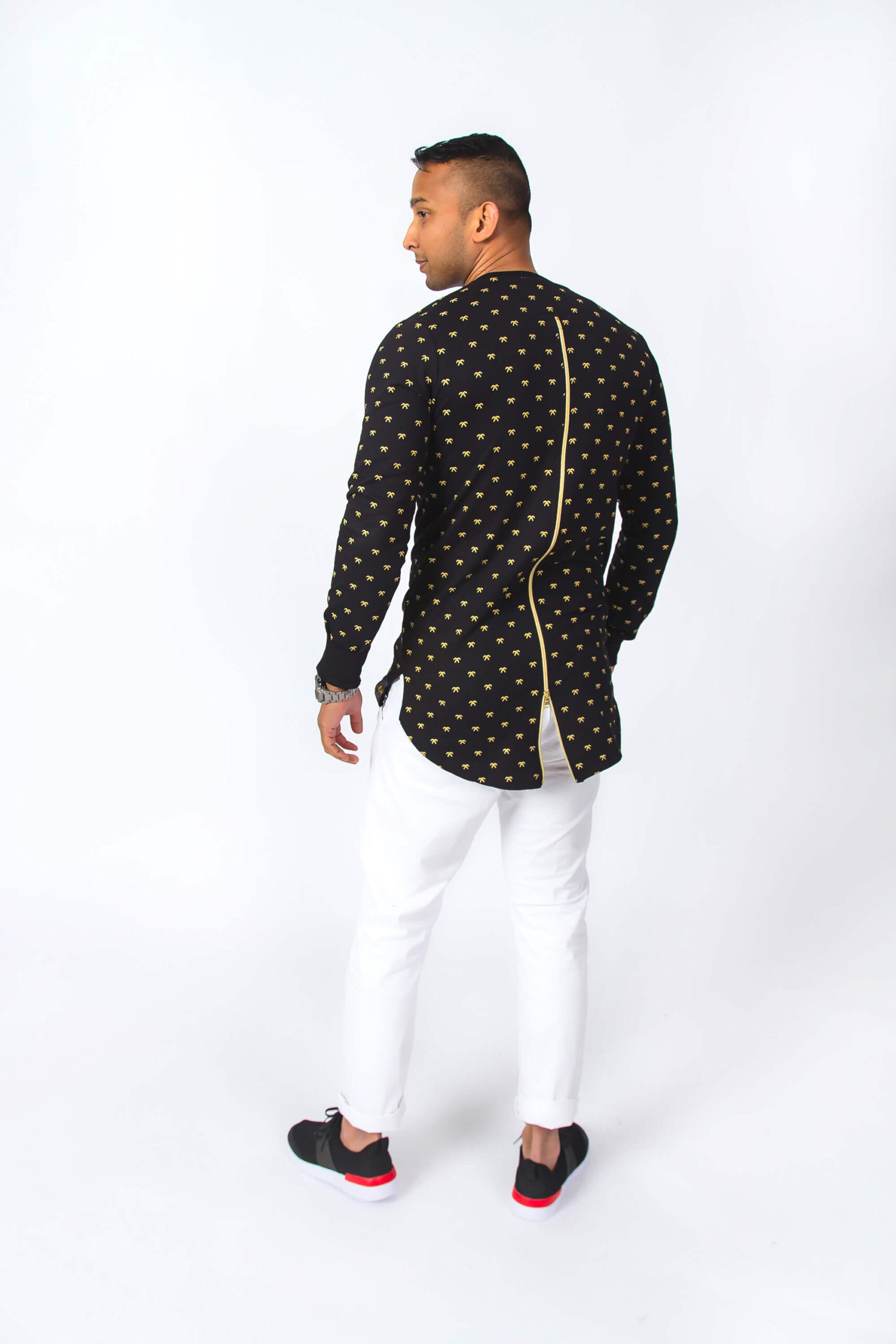 Introducing The Origin and Tribe Royal Gold Dust Full length Back Zipper Jumper Top, featuring a fusion of intricate details and unparalleled comfort.