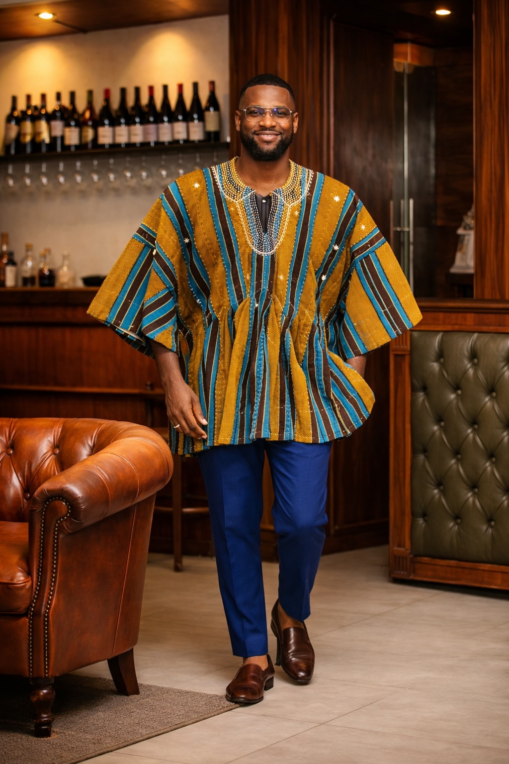 Step into bold cultural elegance with the Royal Mustard Teal Heritage Fugu Smock Top. Inspired by the traditional Batakari of Northern Ghana, this standout piece blends rich mustard tones with deep teal and black stripes. As a result, it creates a striking and sophisticated look that celebrates heritage while embracing modern style.