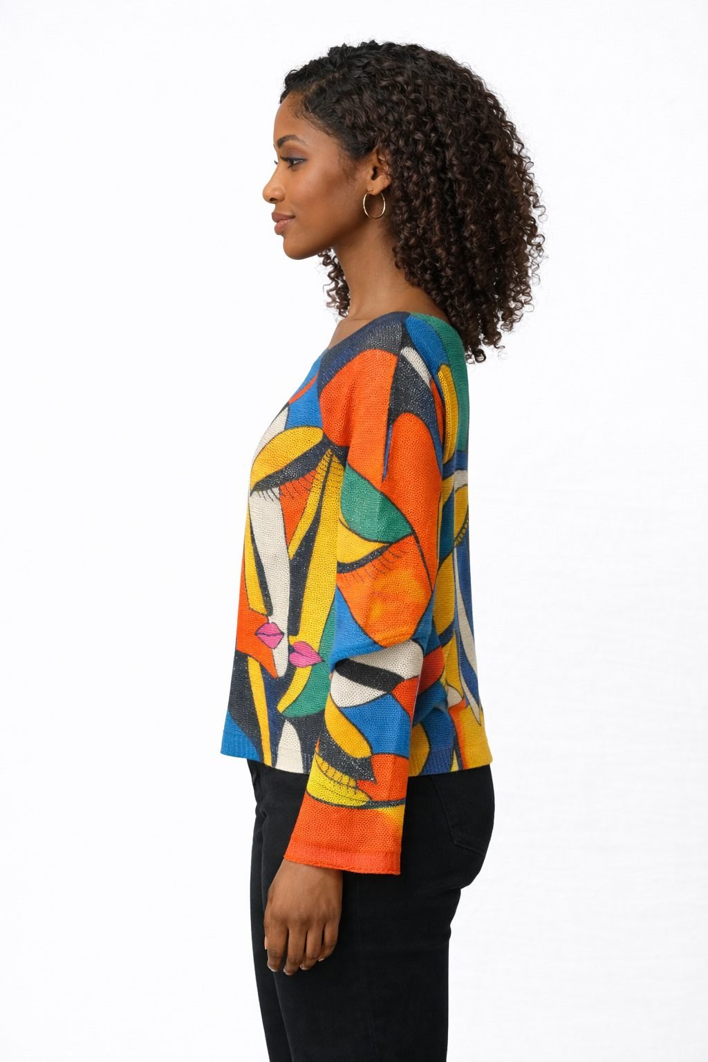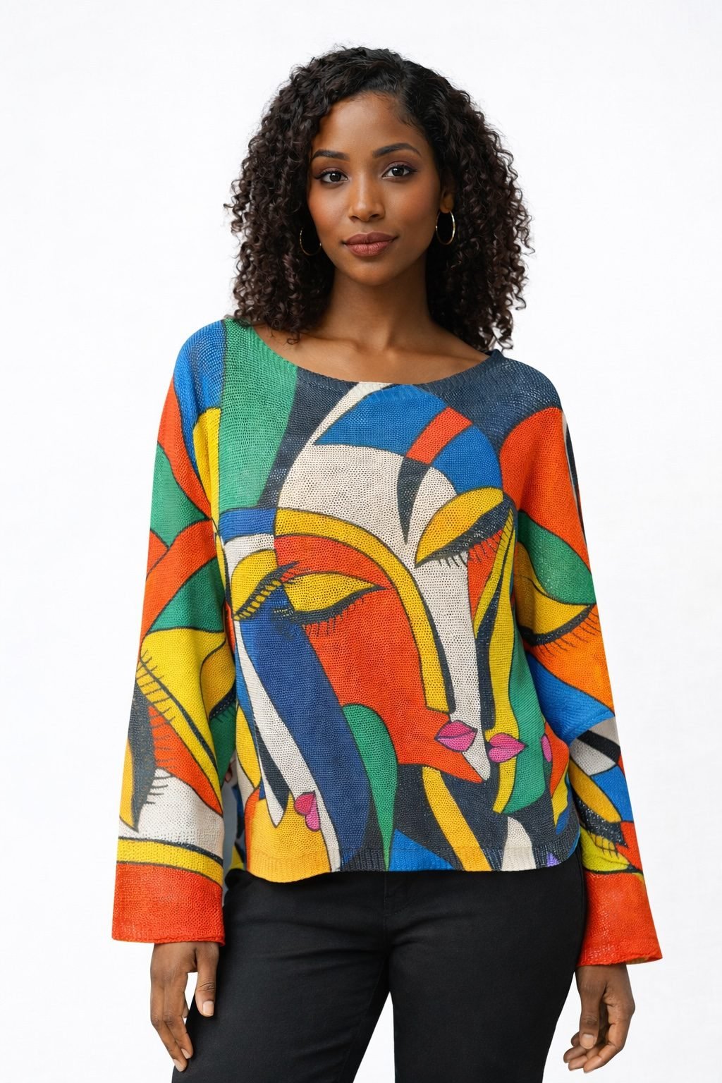Bring joy, color, and personality into your wardrobe with this Silhouette Knit Top, a playful yet stylish piece designed for women who love expressive fashion with a touch of whimsy. This standout sweater features a striking patchwork of bright colors, modern shapes, and adorable cat silhouettes that instantly catch the eye. Whether you’re a devoted cat lover, an art enthusiast, or simply someone who enjoys lively, creative clothing, this top transforms everyday outfits into something memorable and fun.