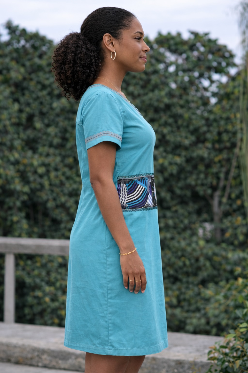 This sky blue dress can be styled in many ways. Pair it with sandals or flats for a relaxed daytime outfit. Alternatively, add accessories and heeled sandals for a more polished finish.