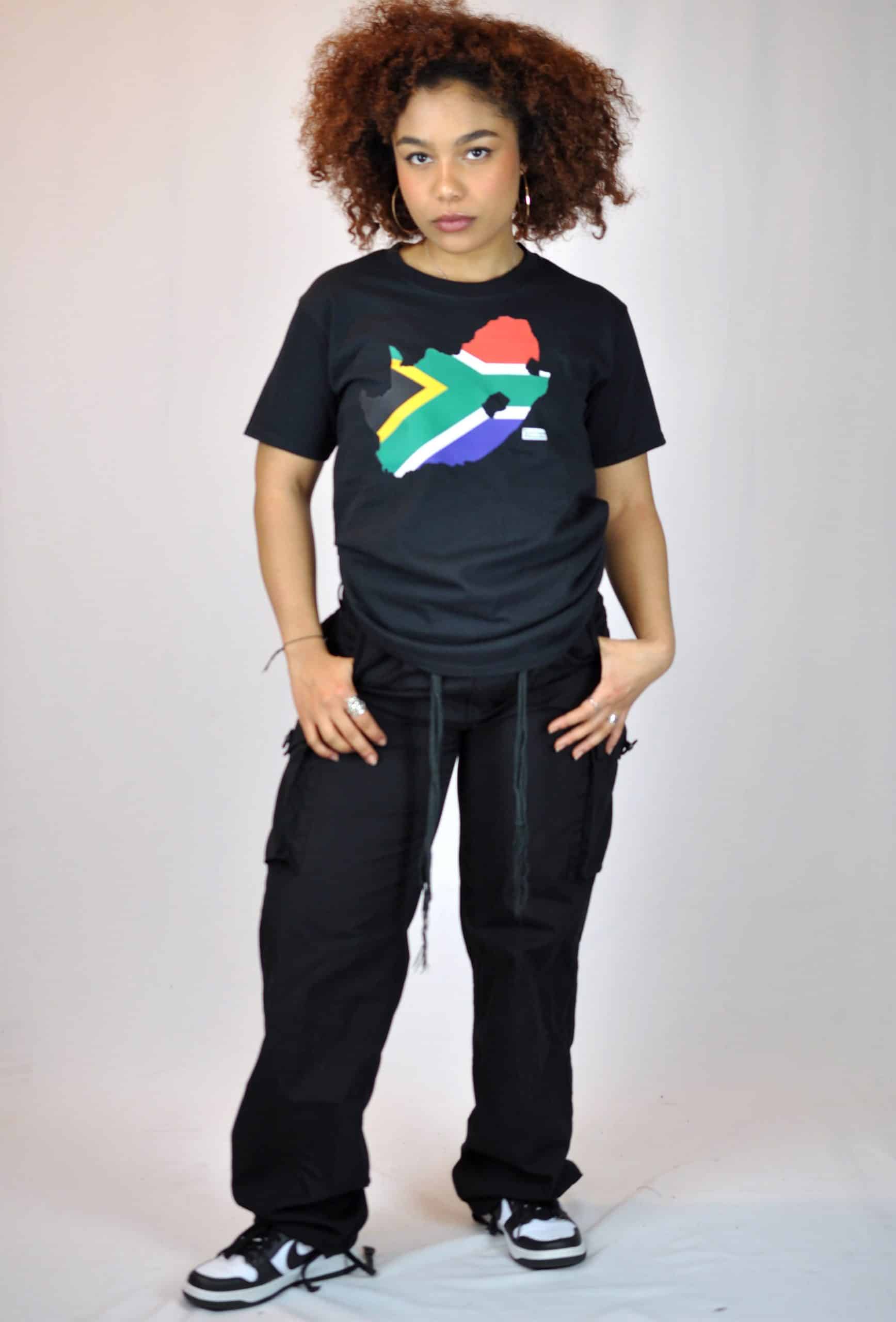 Represent your country with the Adenike South Africa Country Top or pick form ourrange of Country tops. These tops are simple but make a statement. All tops are black, with the Country flag of choice on the middle of the top. In addition, it is not just the flag colours, but also the actual shape of the country. Treat yourself or someone special to this fabulous top!