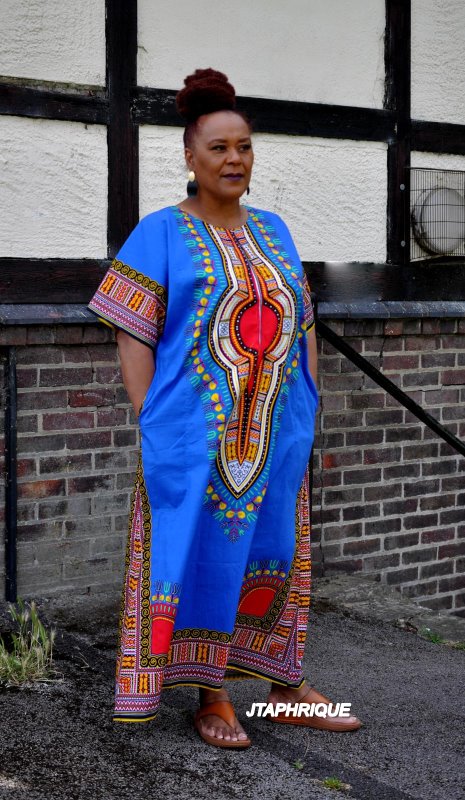 Be super comfortable but elegant in this beautiful, one size fits all, ladies Dashiki Kaftan Zip Front Maxi Dress! It is lightweight and loose fitting with a convenient zip at the front which makes it easy to wear. Designed with deep side pockets for that extra bit of convenience.