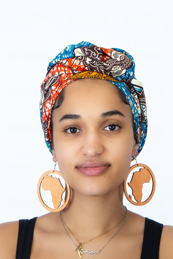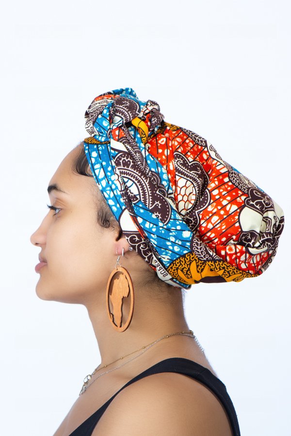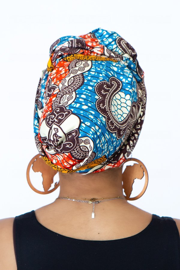 Teki Headwrap in Blue and Orange Multi-colour African