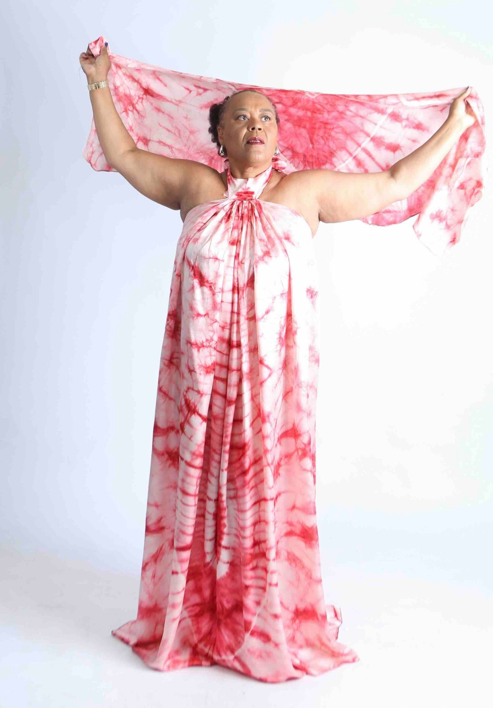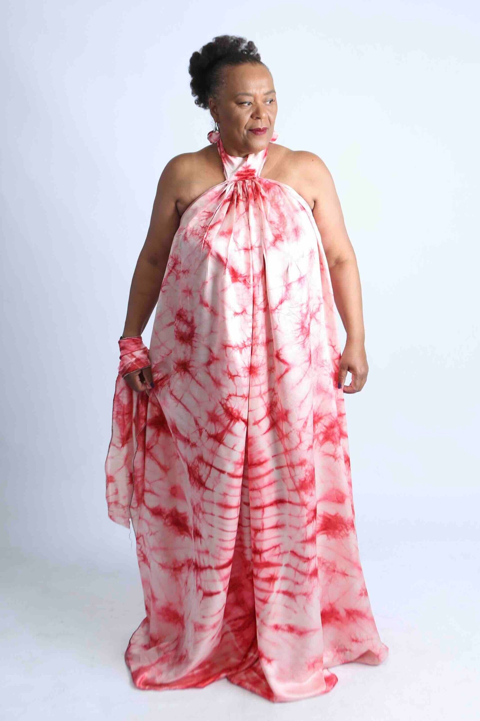 Flowing pink tie-dye maxi dress with matching headscarf