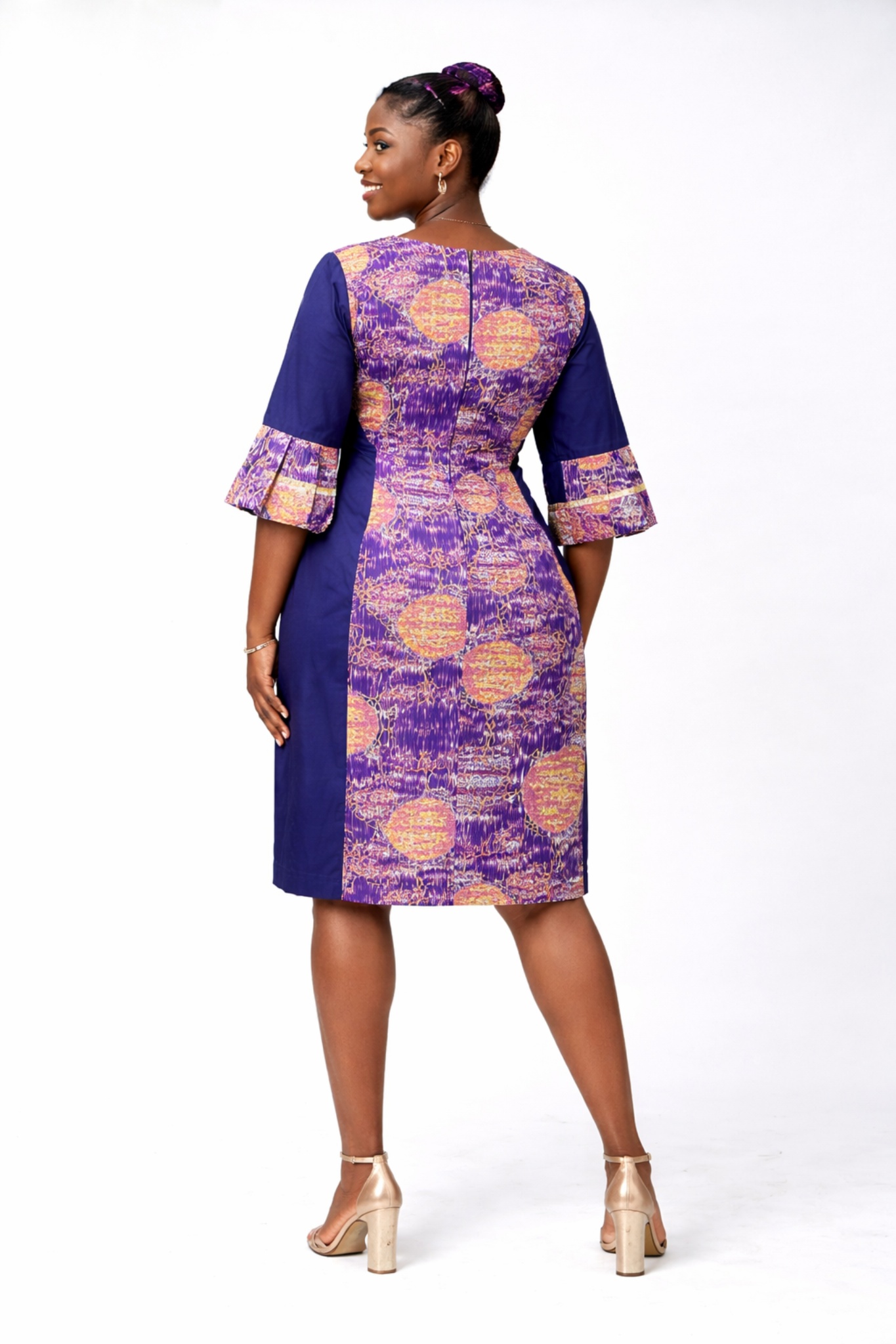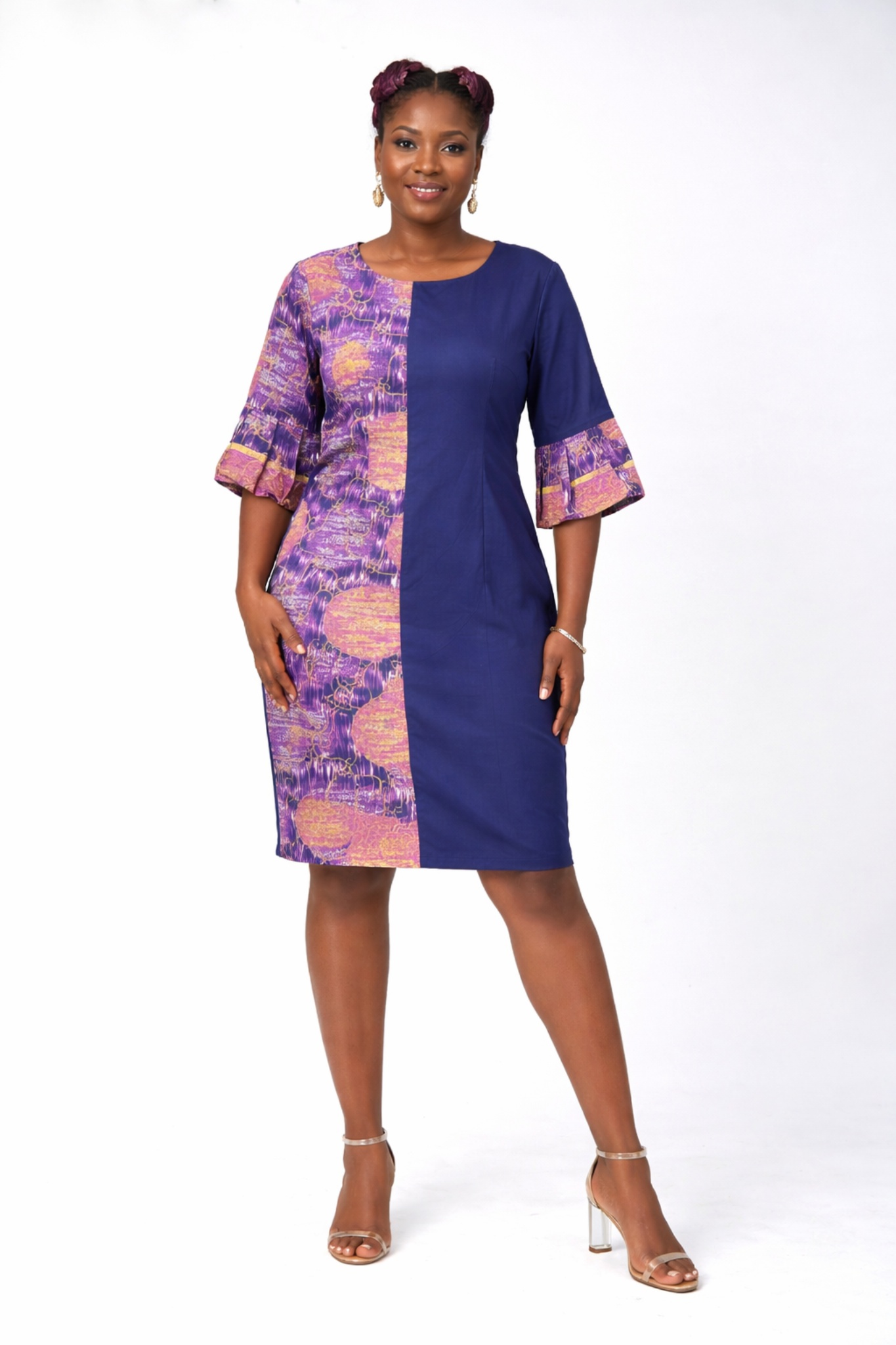 This Tiwa Abstract Purple Zip Front Knee Length Dress is the perfect piece to brighten up your wardrobe. This dress gives you a unique look as well as the purple fabric helping to finish the unique style. The strap sleeve style ensures comfort as well as allowing for a long sleeved top to be worn underneath to help dress it up for the cold weather!