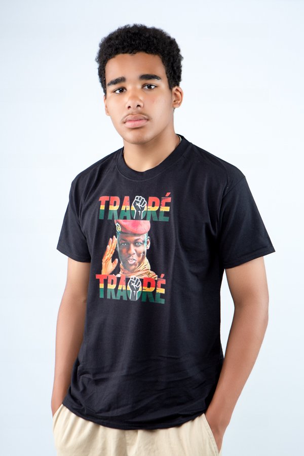 Show your pride, power, and political awareness with this bold TRAORÉ graphic t-shirt featuring a vivid portrait of Ibrahim Traoré, the current leader of Burkina Faso. Known for his fearless stance against imperialism and his calls for African self-determination, Traoré has become a modern symbol of revolutionary spirit and Pan-African unity — and this shirt captures that energy with vibrant style.