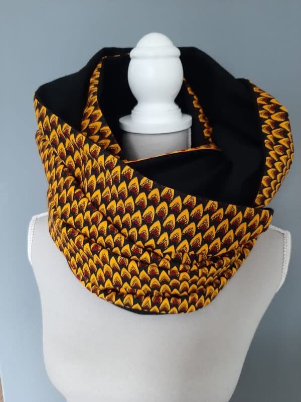 This Umaler Ankara African Print Versatile Infinity Unisex Neck Scarf is unique, hand-made as well as being reversible. It is made of 100% Cotton with high quality and durable Ankara print fabric and is fully lined with a Polyester Wool blend to keep you warm and cosy!