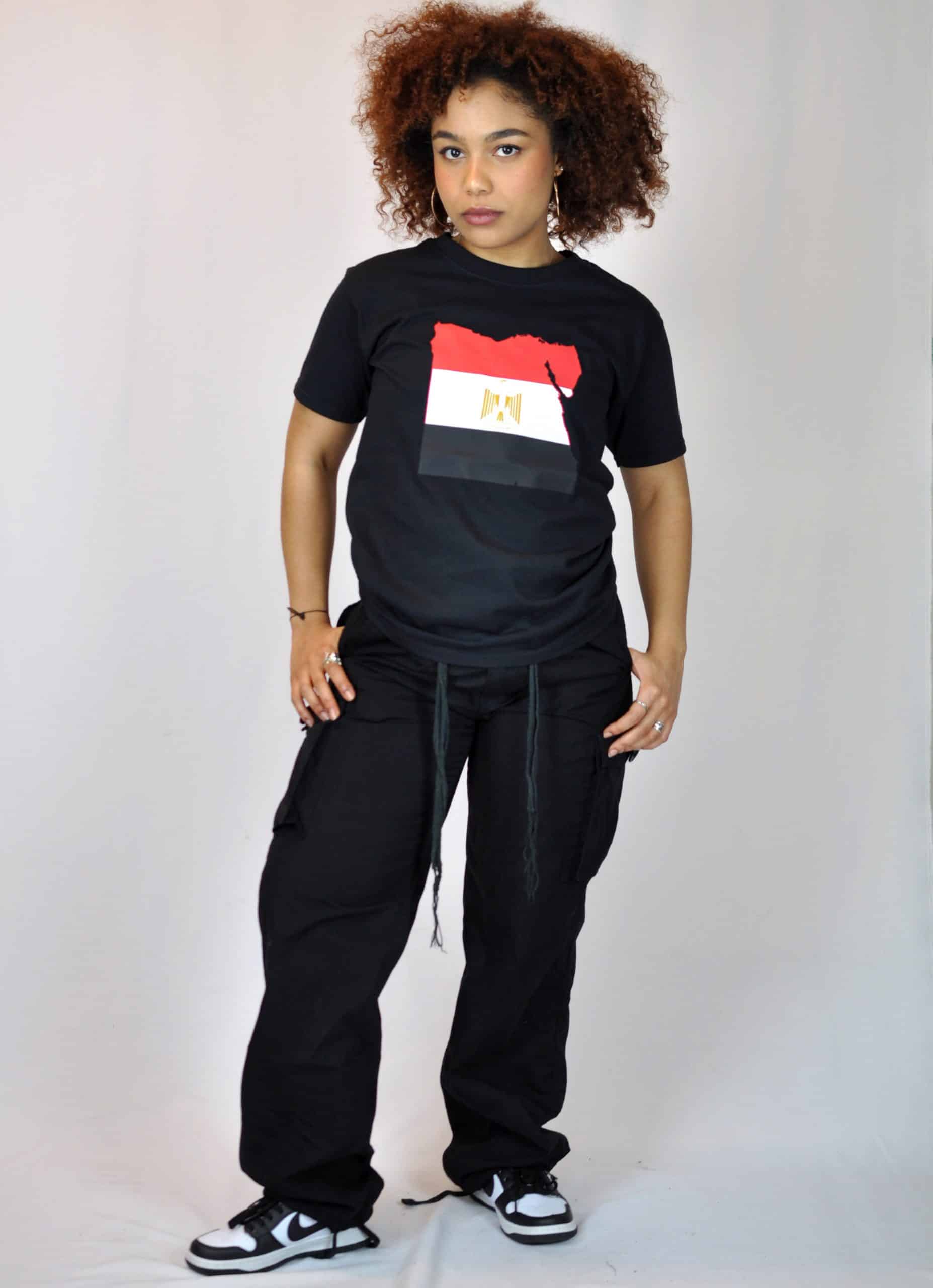 Represent your country with the Adebowale Egyptian Country Top or pick form ourrange of Country tops. These tops are simple but make a statement. All tops are black, with the Country flag of choice on the middle of the top. In addition, it is not just the flag colours, but also the actual shape of the country. Treat yourself or someone special to this fabulous top!