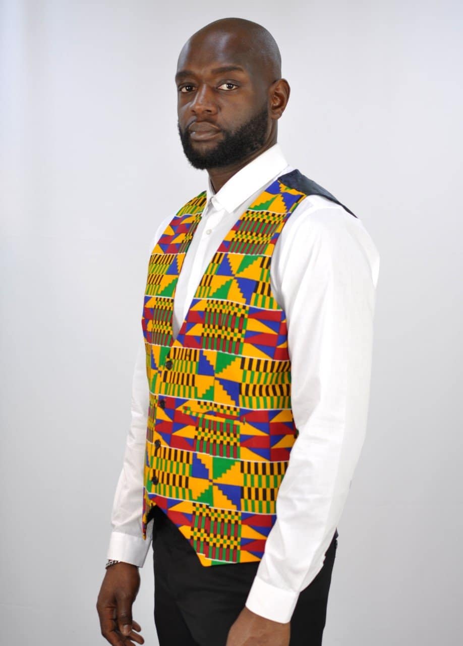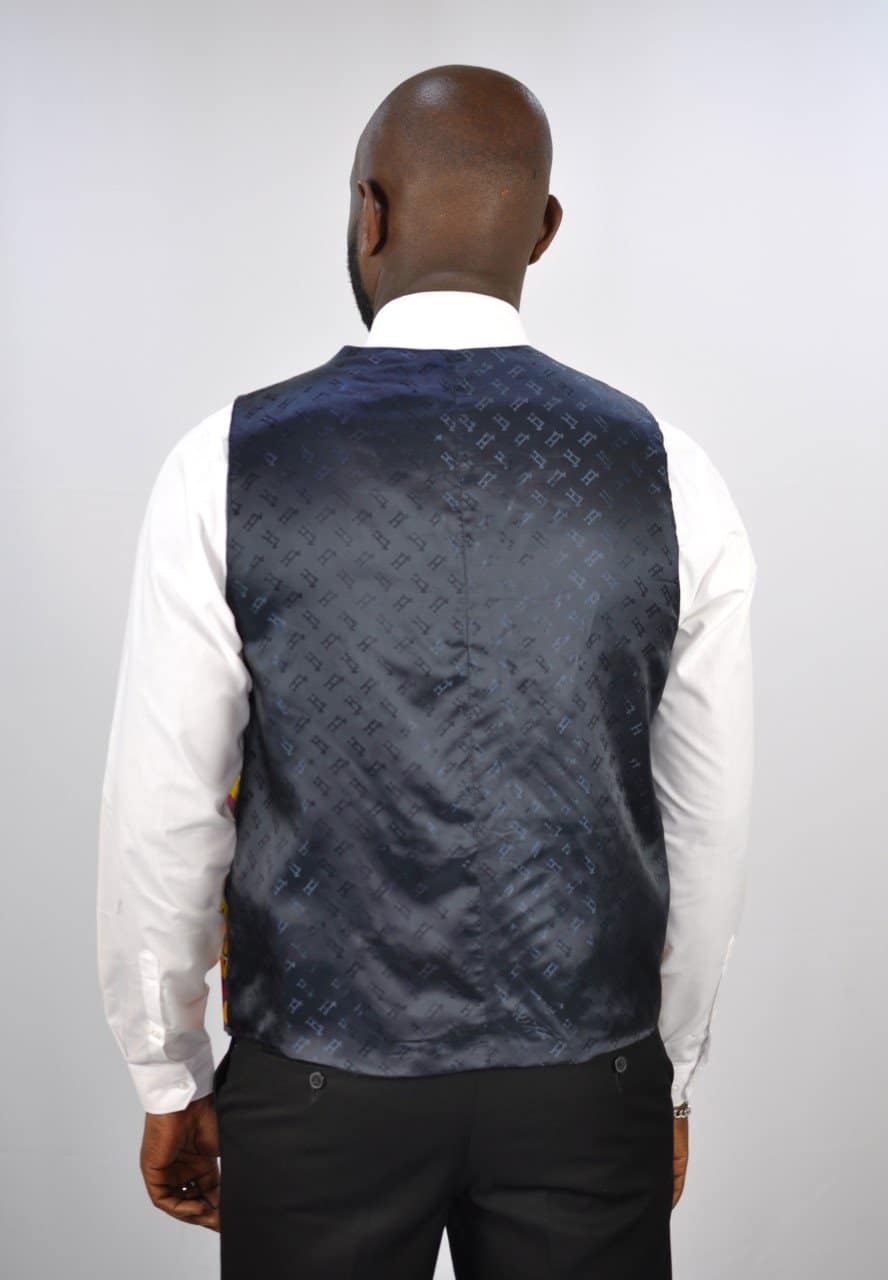 Looking for an African print waistcoat? We have you covered with this custom made handsome waistcoat in Ankara Fabric. Perfect for formal occasions, the low cut allows you to add some flair to your dress shirt. Purchase this waistcoat as displayed or customise it with your own design.