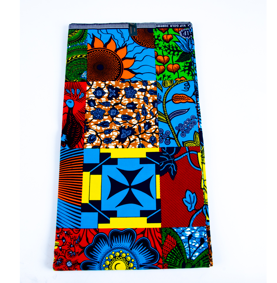 This Vibrant African Ankara Multi-colour Abstract Design Fabric makes the perfect fabric for dress making or would make a perfect table cloth or can be used as a head wrap! It features a beautiful deep blue floral pattern that is sure to help you stand out from the crowd. The beautiful hues of red, deep blue and greens mesh together in this abstract Ankara pattern, making this pattern stand out.