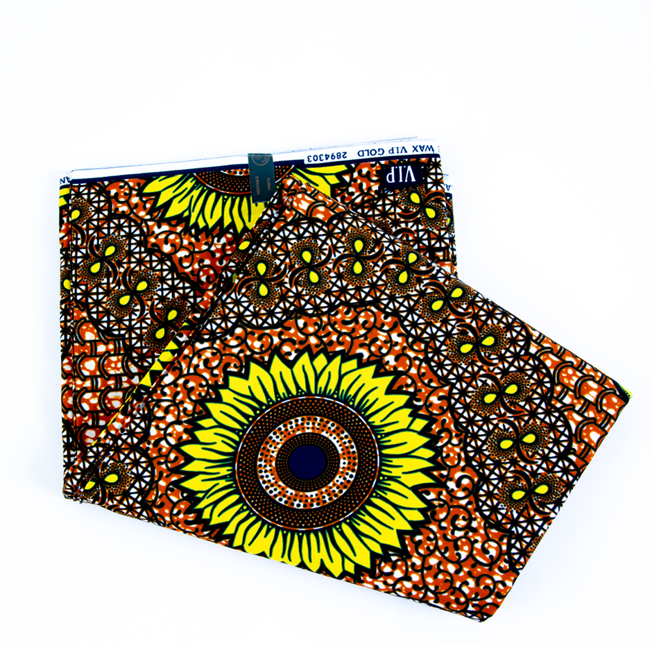 This Ava Authentic African Ankara Fabric/Earthy sunflower Pattern makes the perfect fabric for dress making or would make a perfect table cloth or can be used as a head wrap!  It features a beautiful deep blue floral pattern that is sure to help you stand out from the crowd. The beautiful deep blue colour pattern stands out beautifully on the white and brown back ground, making this pattern stand out.