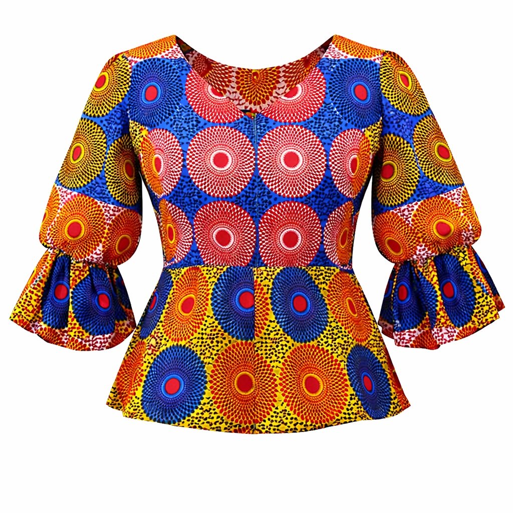 Vibrant Circular Print African Peplum Blouse